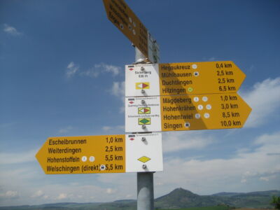 Am Sonntag erwartete uns ein herrlicher Sonnentag mit strahlend blauen Himmel. Als Ziel hatten wir den Hegau auserkoren, eine Landschaft oberhalb vom Bodensee mit einigen reizvollen Vulkankegeln. Bei dieser Tour bestiegen wir zwei bekannte Hegauberge: Den Hohentwiel und den Mägdeberg, der Hohenkrähen ist leider wegen der Einsturzgefahr der Burg gesperrt.
