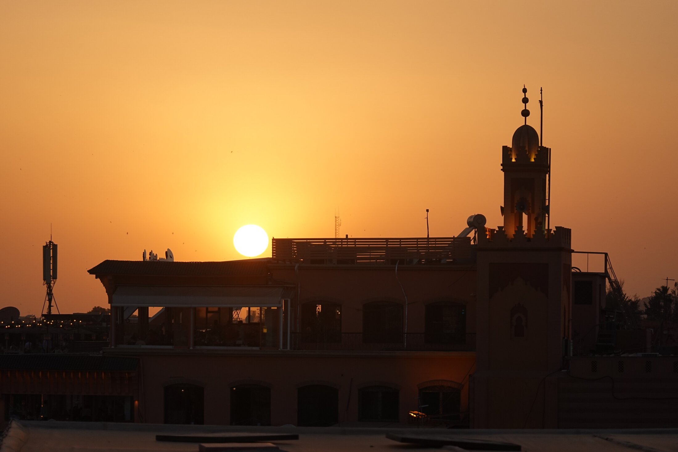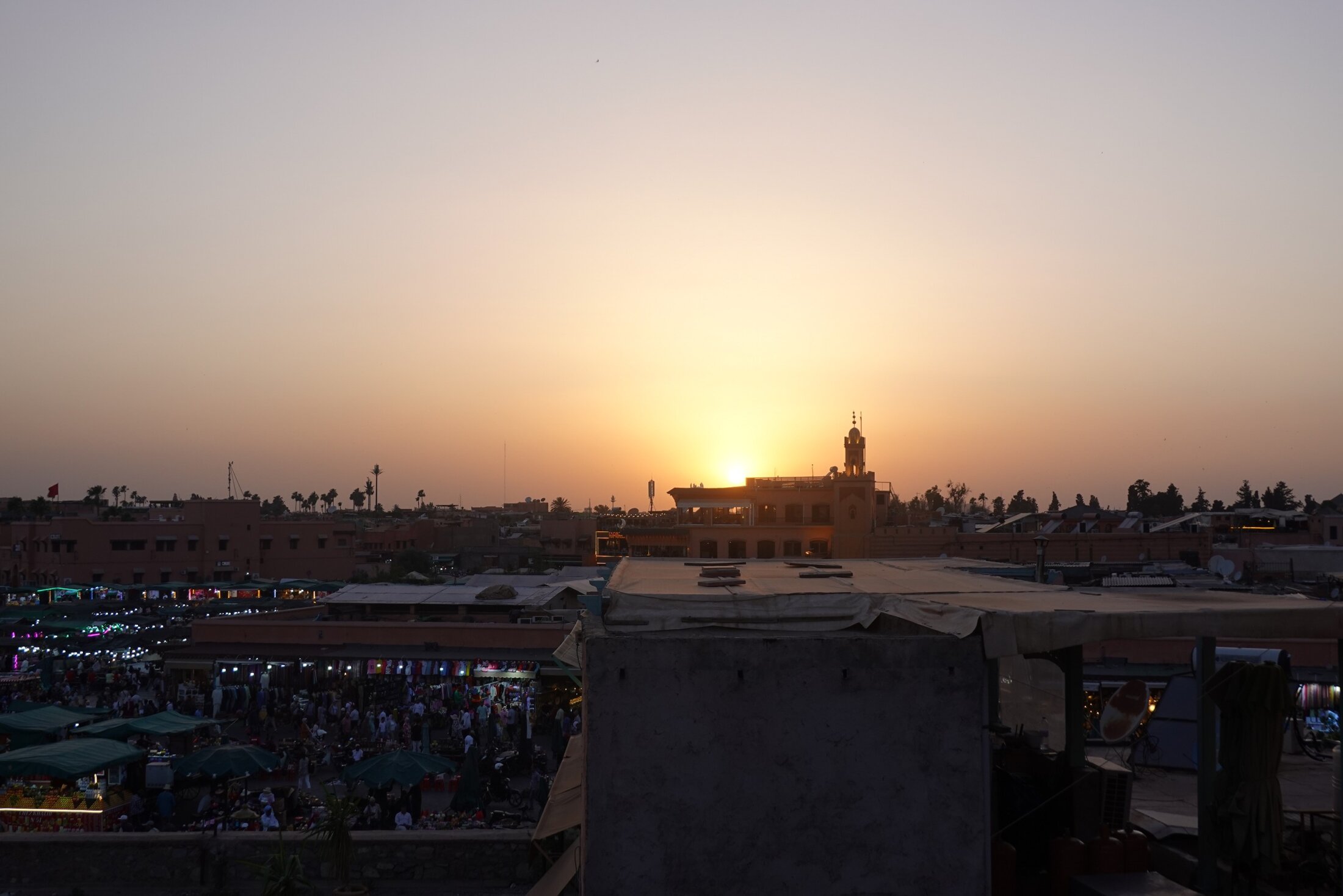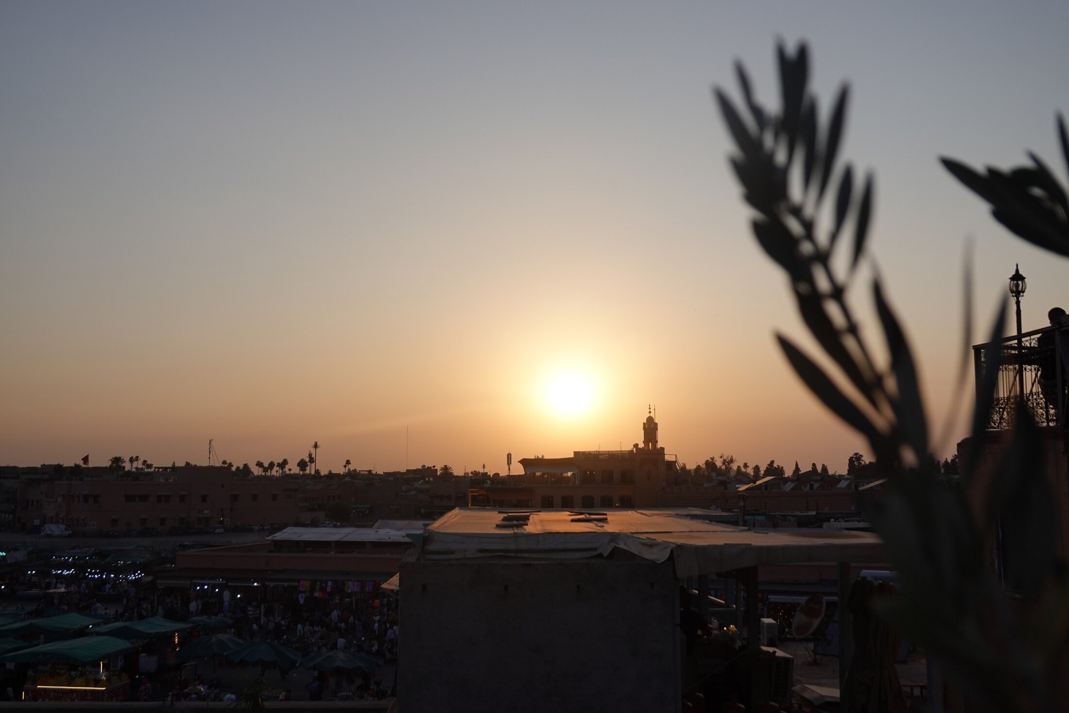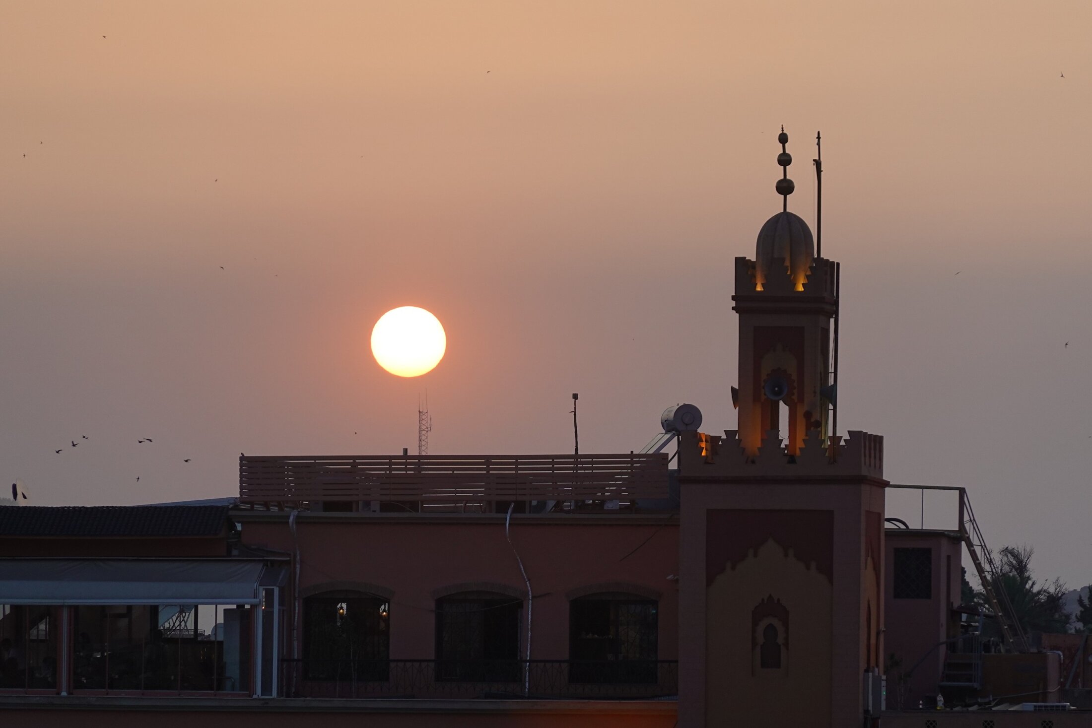 Ein klimatisierter Transferbus brachte uns wieder zurück nach Marrakesch, wo wir erneut im Riad Andalla untergebracht waren. Selten haben wir eine warme Dusche so sehr genossen 😊 Am Abend gab es wieder ein feines Abendessen auf der Dachterrasse vom Riad, inklusive eines prächtigen Sonnenuntergangs. Leider mussten wir nun auch von unserem exzellenten Guide und Wanderführer Zakaria Abschied nehmen – An dieser Stelle nochmals herzlichen Dank für seine tolle (Führer)Tätigkeit im Hohen Atlas!