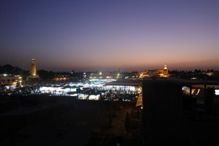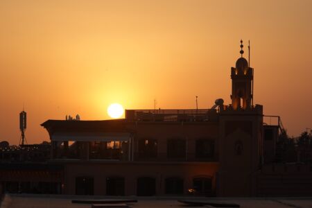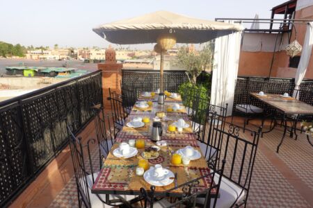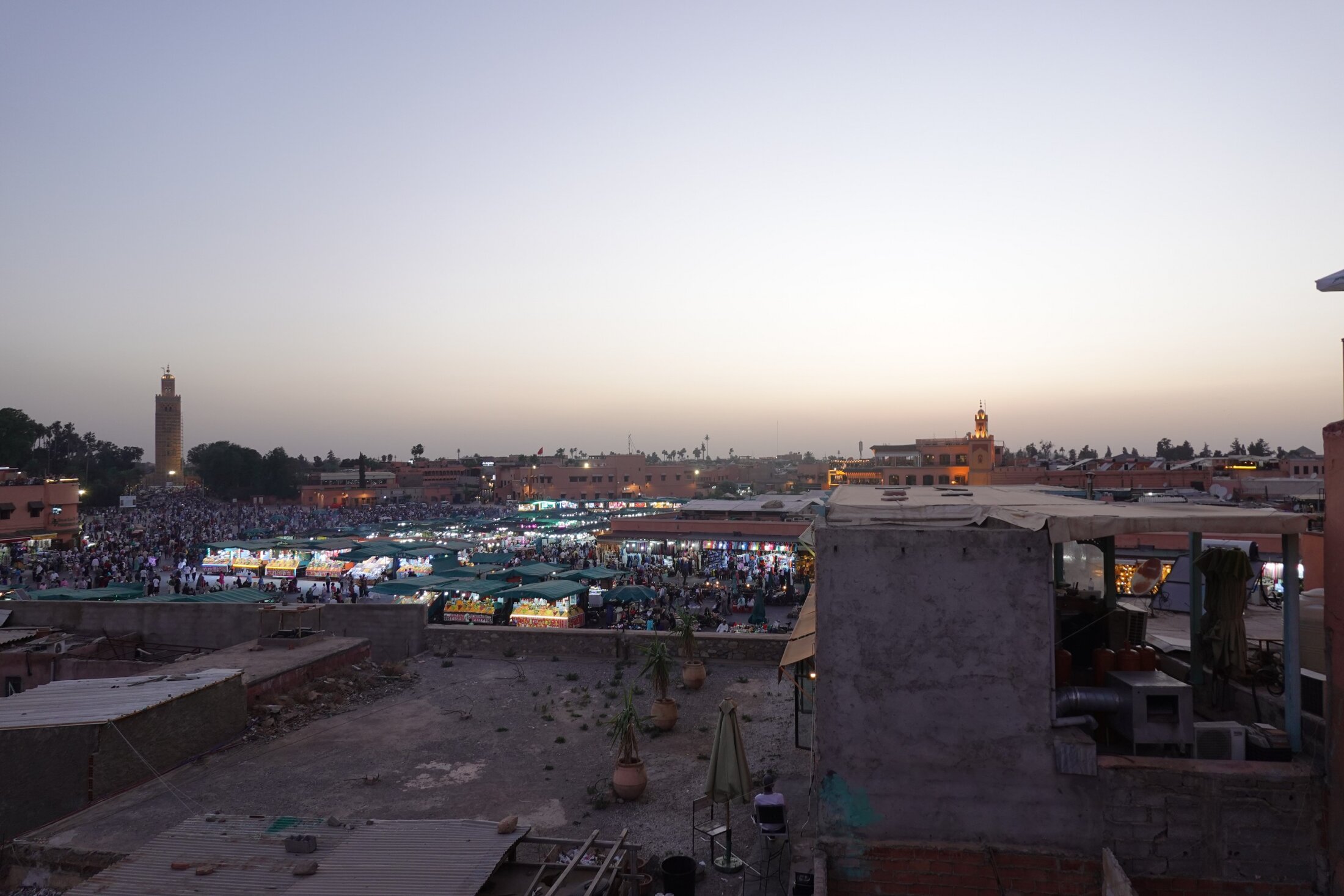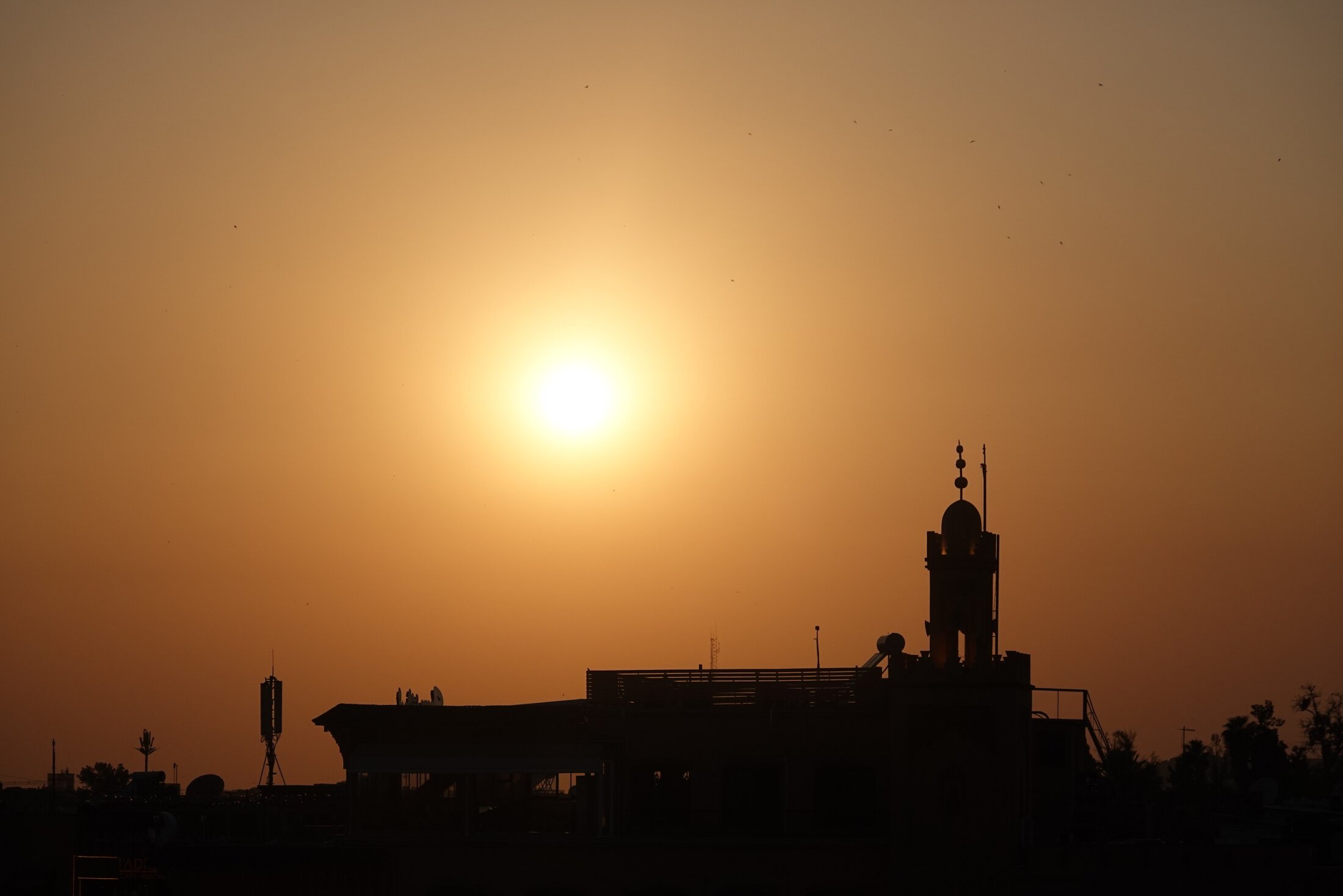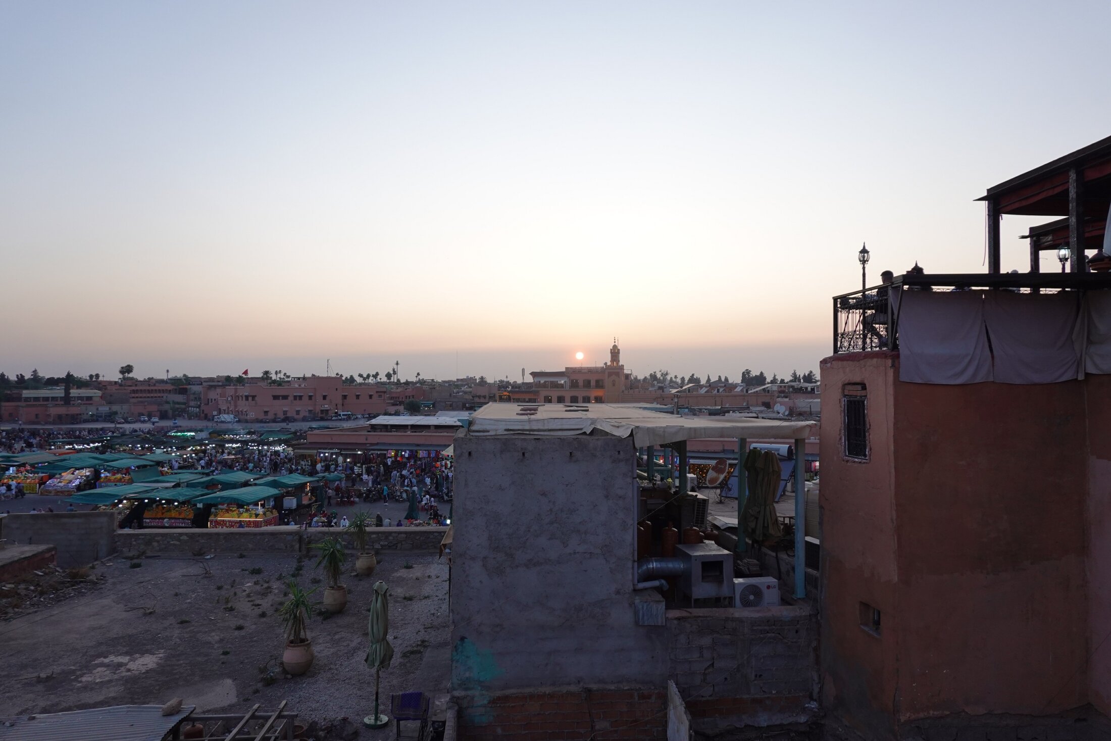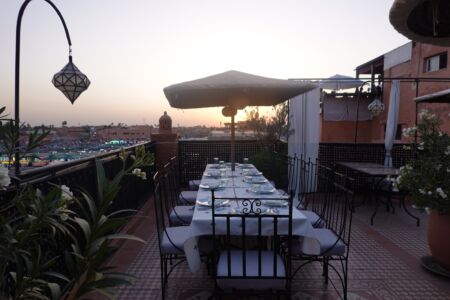 Ein klimatisierter Transferbus brachte uns wieder zurück nach Marrakesch, wo wir erneut im Riad Andalla untergebracht waren. Selten haben wir eine warme Dusche so sehr genossen 😊 Am Abend gab es wieder ein feines Abendessen auf der Dachterrasse vom Riad, inklusive eines prächtigen Sonnenuntergangs. Leider mussten wir nun auch von unserem exzellenten Guide und Wanderführer Zakaria Abschied nehmen – An dieser Stelle nochmals herzlichen Dank für seine tolle (Führer)Tätigkeit im Hohen Atlas!