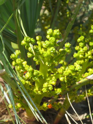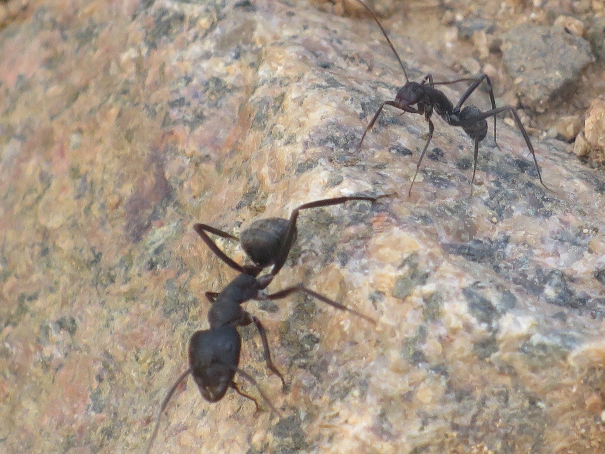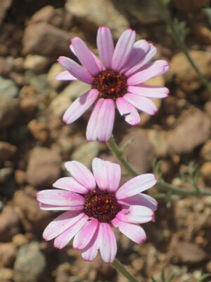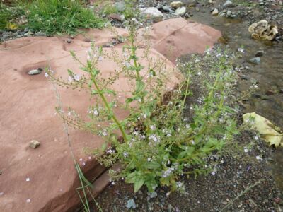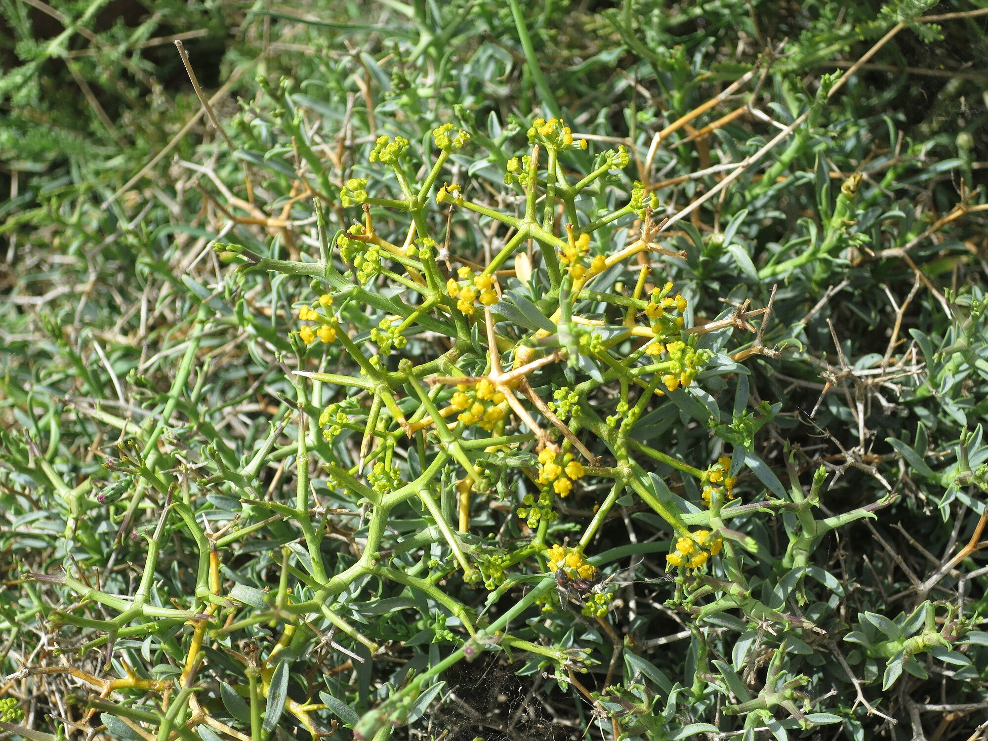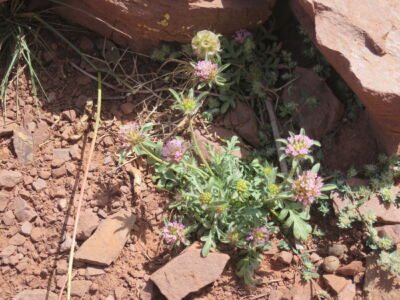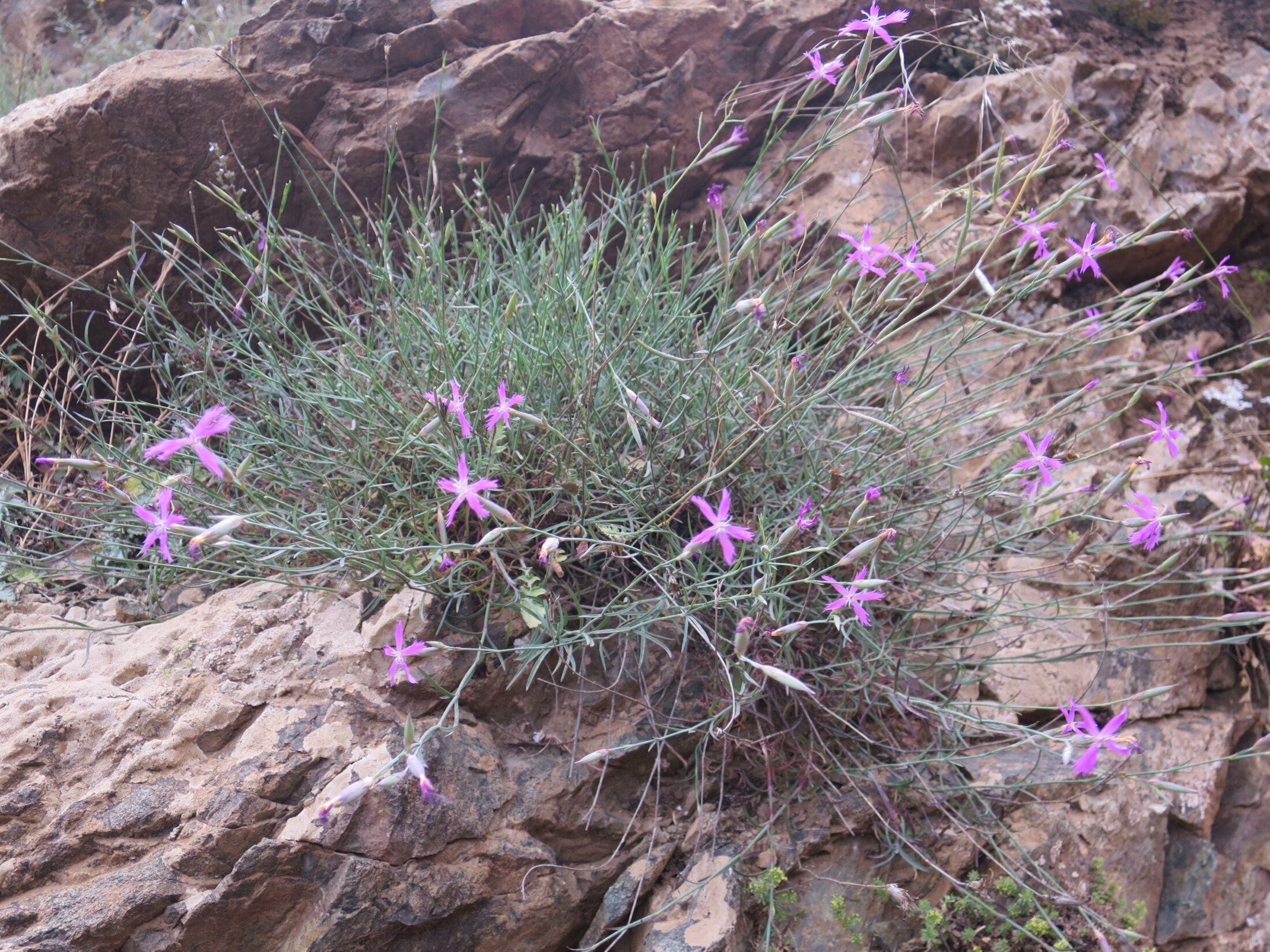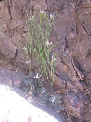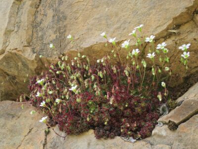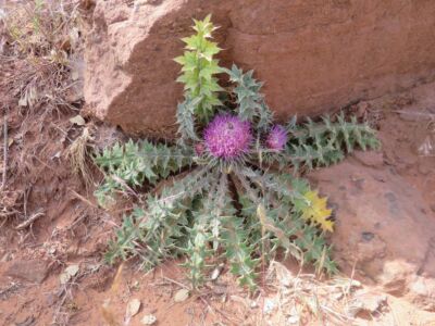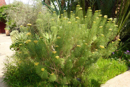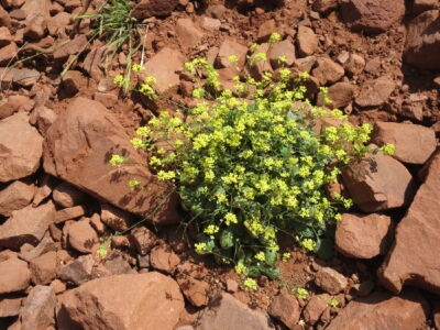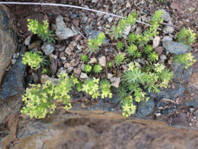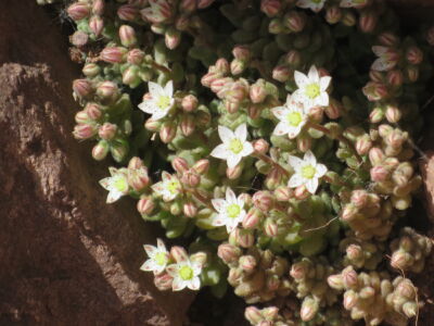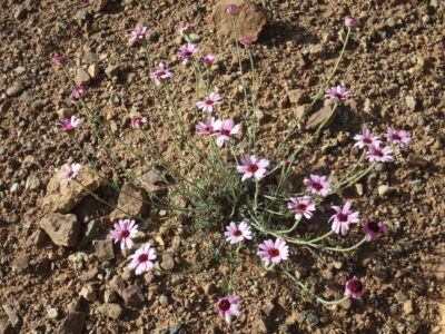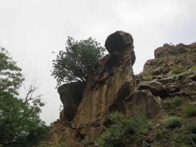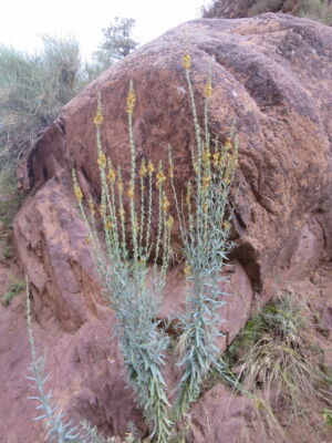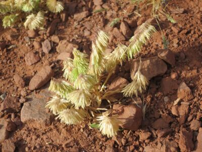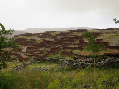 Vom Lagerplatz ging es parallel entlang einer tief eingeschnittenen Schlucht. Wir gelangten sehr aussichtsreich zum Tizi n’Igrane (2.000 m), von wo aus wir eine phantastische Aussicht auf kleine, sich an die Berghänge schmiegende, Berberdörfer mit aus rosa und rotem Stein errichteten Häusern und dem Ourika-Tal hatten. An den Hängen entdeckten wir unzählige Zwergpalmen und natürlich weitere botanische Kostbarkeiten. Der Abstieg hinunter ins Ourika-Tal war vor allem im unteren Teil aufgrund der Schwüle sehr schweißtreibend. Wir erreichten den Flusslauf in der Nähe des Wallfahrtortes Setti Fatma – Der ideale Platz für ein leckeres Mittagsessen. Doch nun brauten sich über uns immer mehr Gewitter zusammen. Mit viel Glück konnten wir noch unser Mittagessen zu uns nehmen. Danach fuhren wir mit einem Sammeltaxi in den Ortskern. Die teilweise extremen Regengüsse überbrückten wir in einem Restaurant bei einem Glas Tee oder frischgepressten Orangensaft. Langsam wurde der Niederschlag moderater und wir wanderten danach in ca. 20 Minuten zu unserer heutigen Unterkunft, einer landestypischen Gîte d’Etape zwischen S. Fattma und Ait Boulmane gelegen.