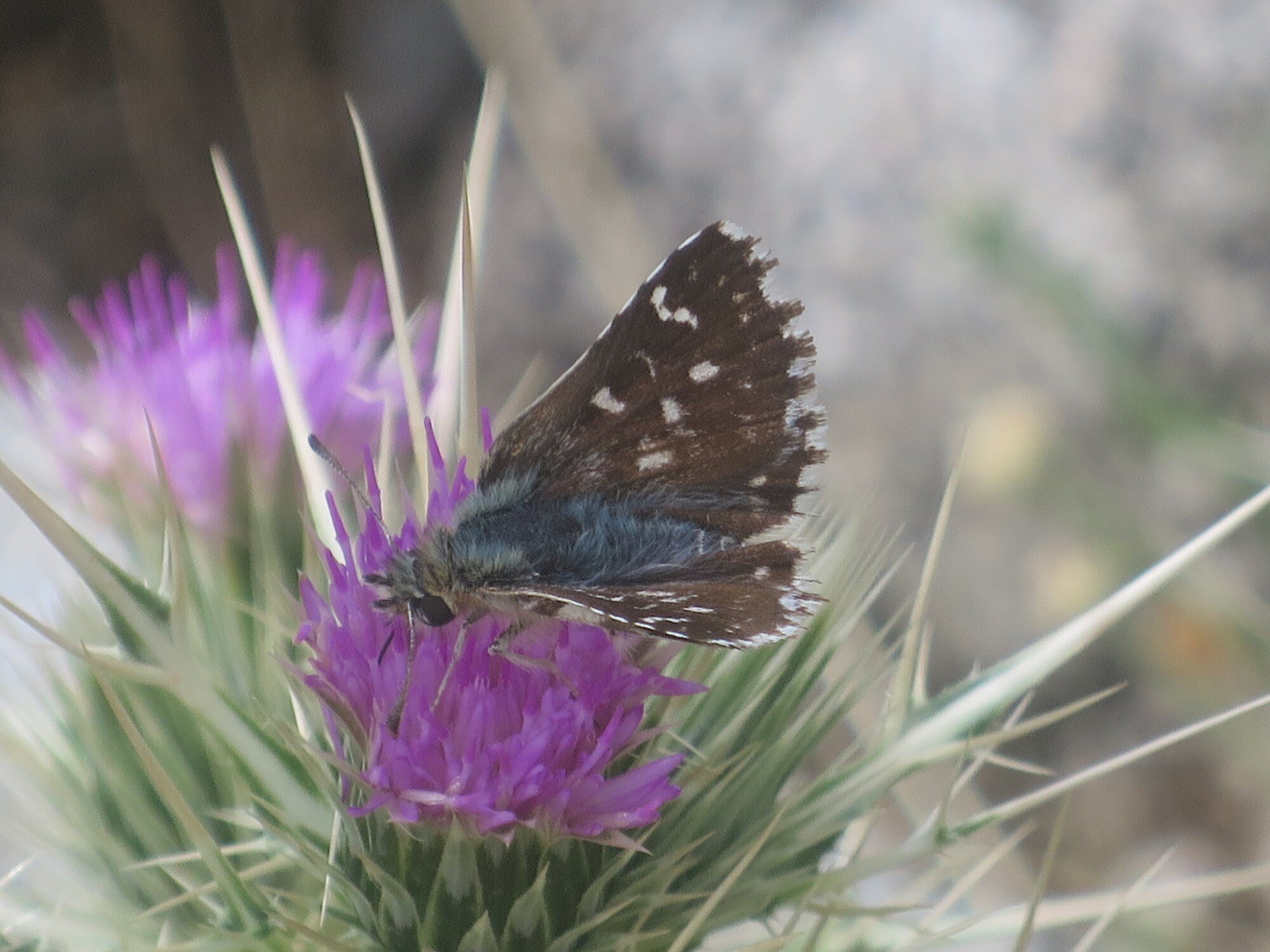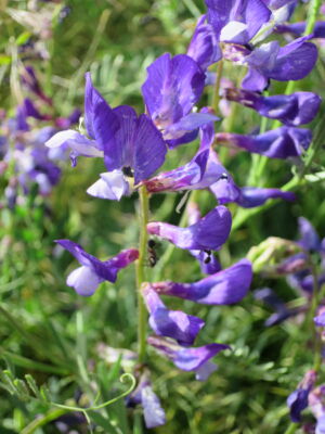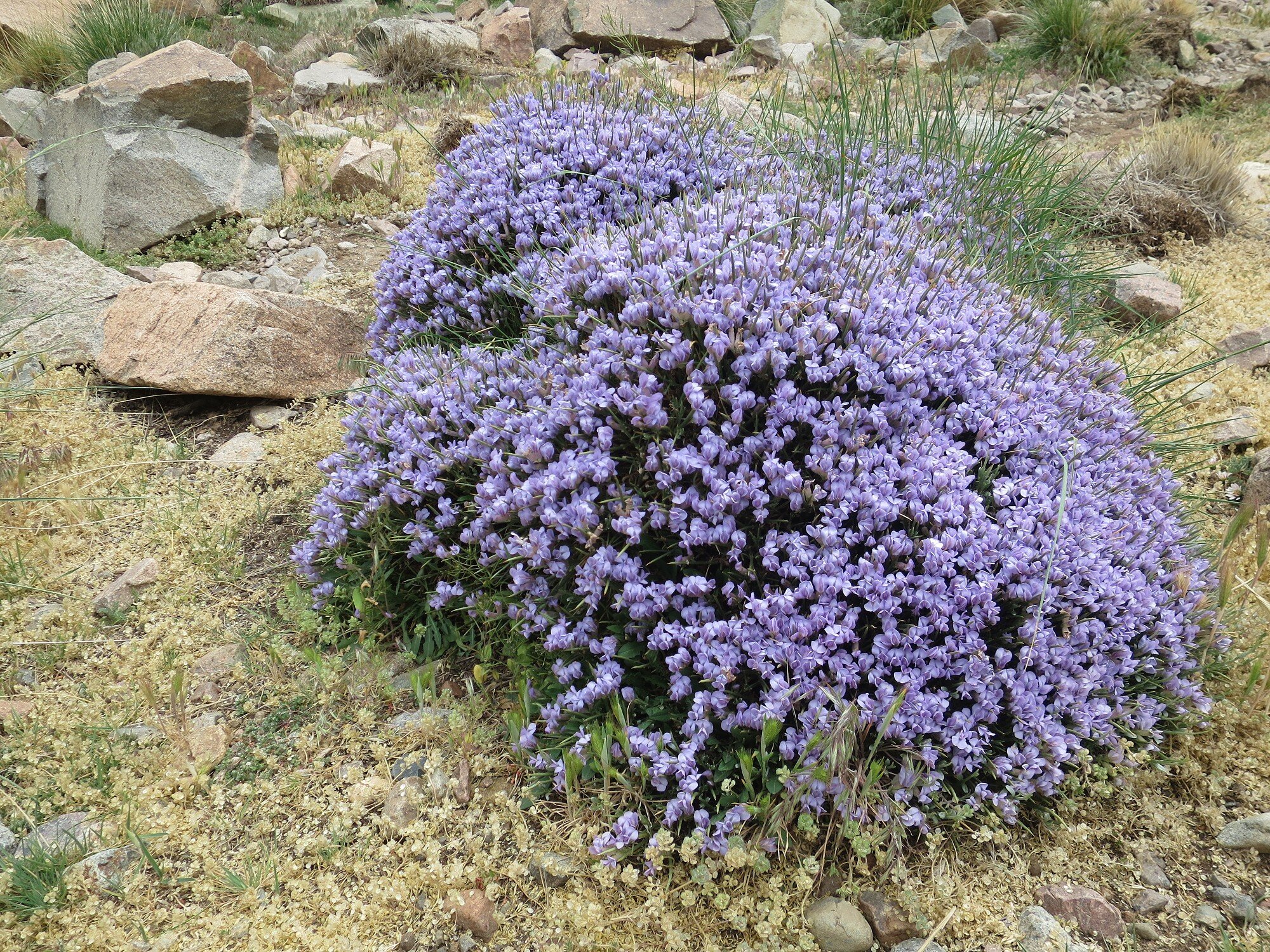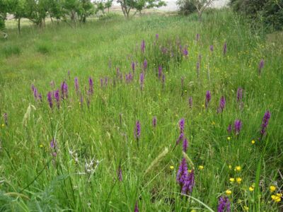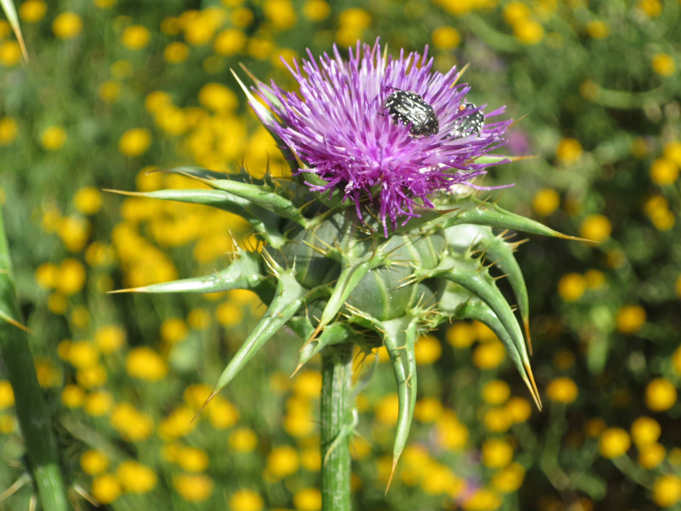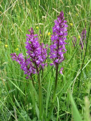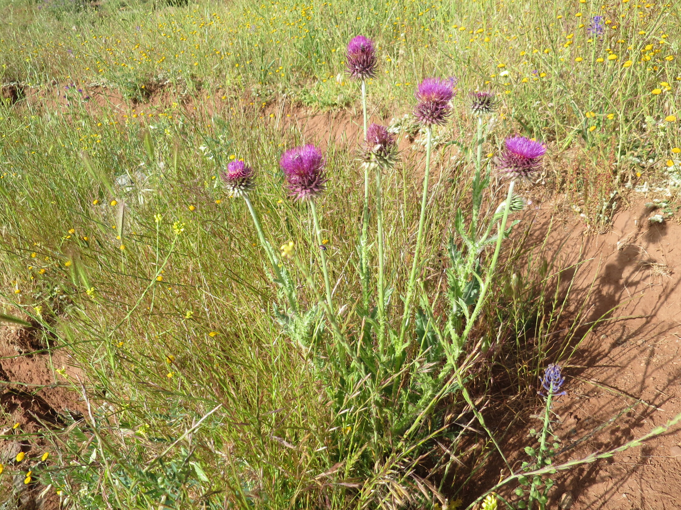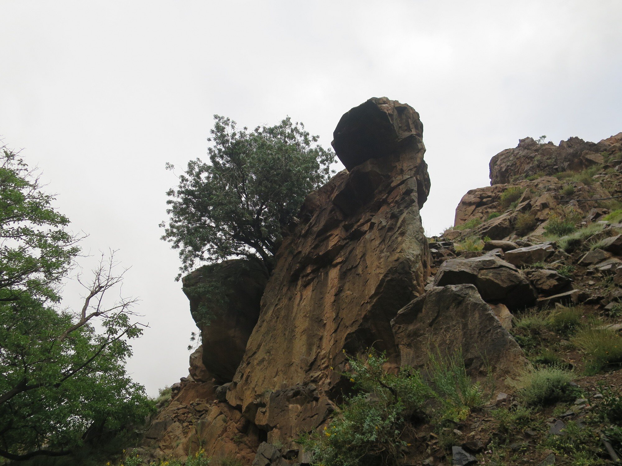 Kurz danach erreichten wir das Dorf Ouarzazt, wo das weitläufige Yagour-Plateau beginnt. Es dient den Nomaden der Umgebung als Sommerweide für ihre Tiere. Leider sind die prähistorischen Felsgravuren, die von der frühen Besiedelung dieses Ortes Zeugnis ablegen, mittlerweile durch Vandalismus zerstört. Auf dem Hochplateau erwartete uns eine sehr üppige Pflanzenwelt – Unzählige Pflanzenpolster, selbst Orchideen und diverse Liliengewächse. Mit dieser reichhaltigen Vegetation hätte keiner von uns im Hohen Atlas gerechnet. Zakaria erläuterte uns, dass der vergangene Winter auch relativ reich an Niederschlägen war. Leider zogen nun die ersten dunklen Wolken auf – Den ersten großen Regenschauer überstanden wir während unserer Mittagspause unter einem großen Nussbaum. Hier erwartete uns ein lecker zubereitetes Mittagsessen. Danach mussten wir weiterziehen – Es ging weiter durch ein üppig grünes Hochtal mit einer immensen Blumenpracht – Leider wurden wir auch immer wieder von leichten Regenschauern begleitet. Der Starkregen und die vereinzelten Gewitter blieben glücklicherweise in den höheren Bergen hängen.