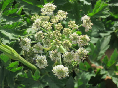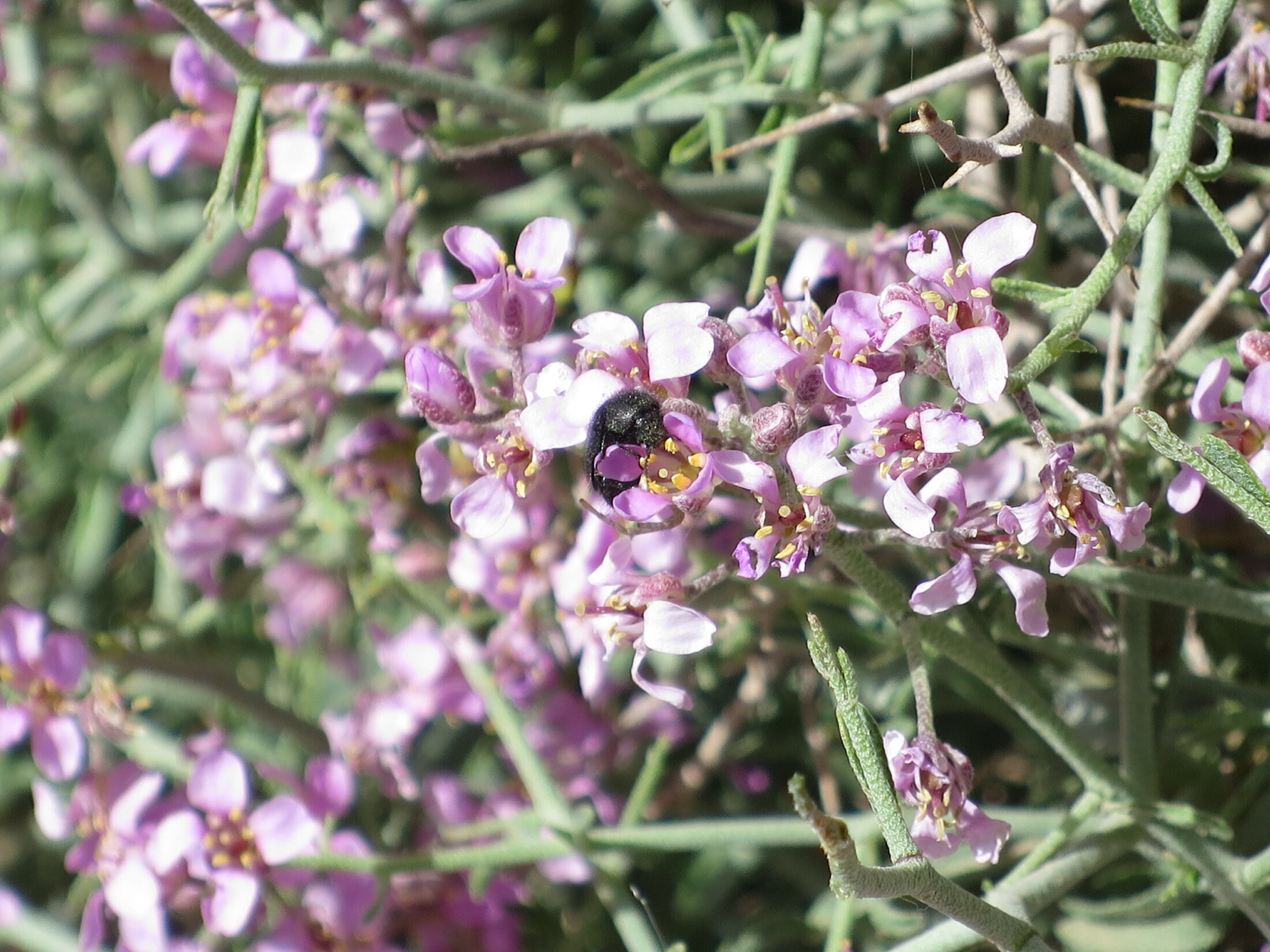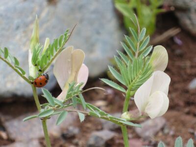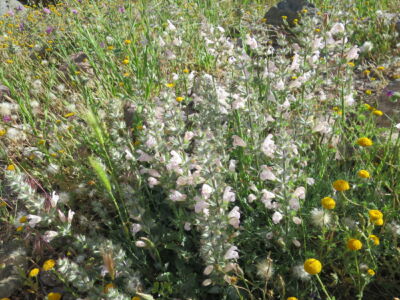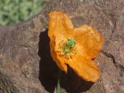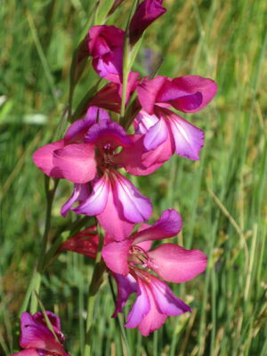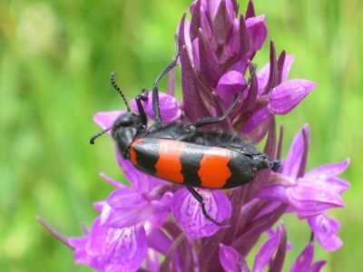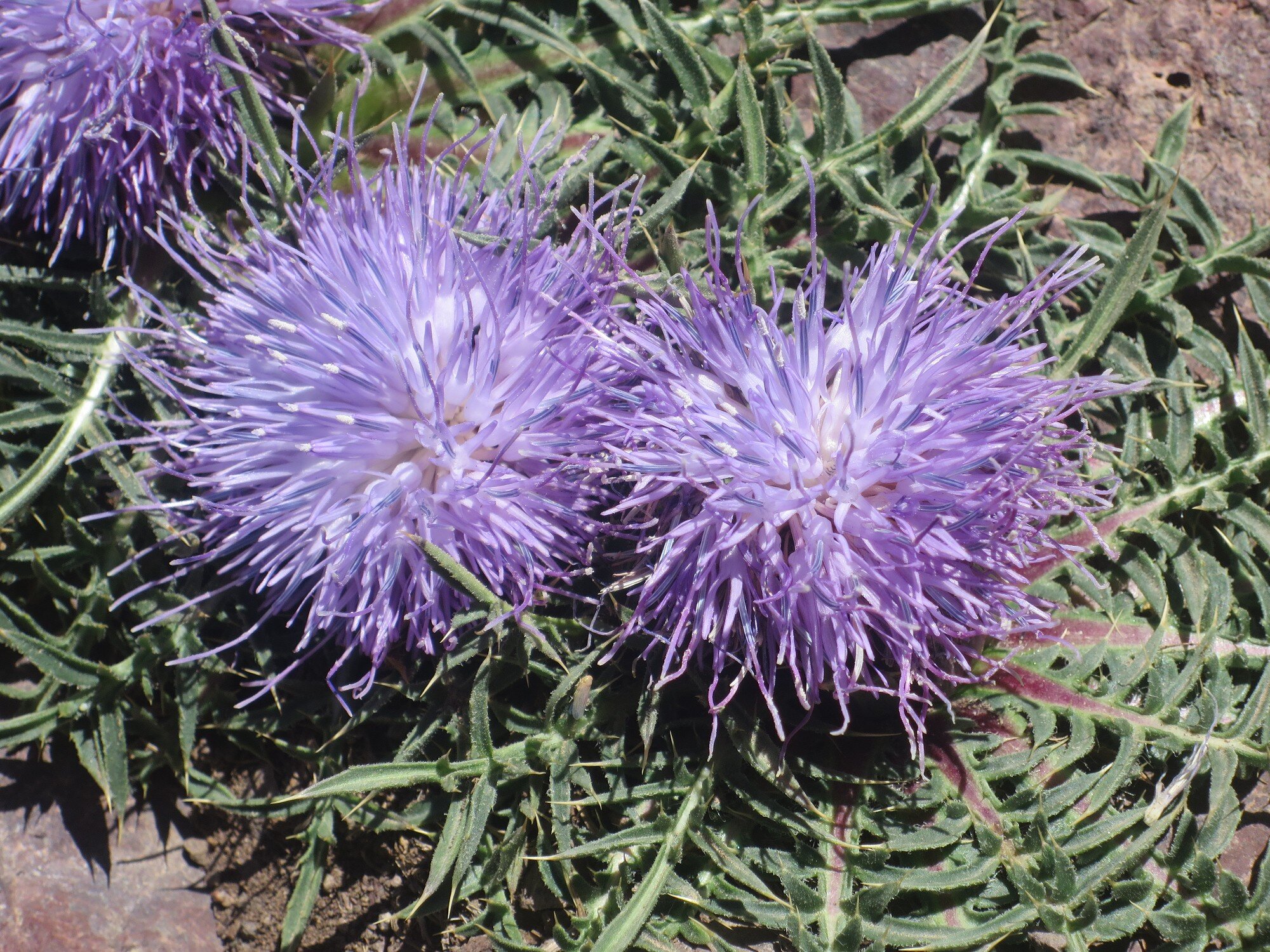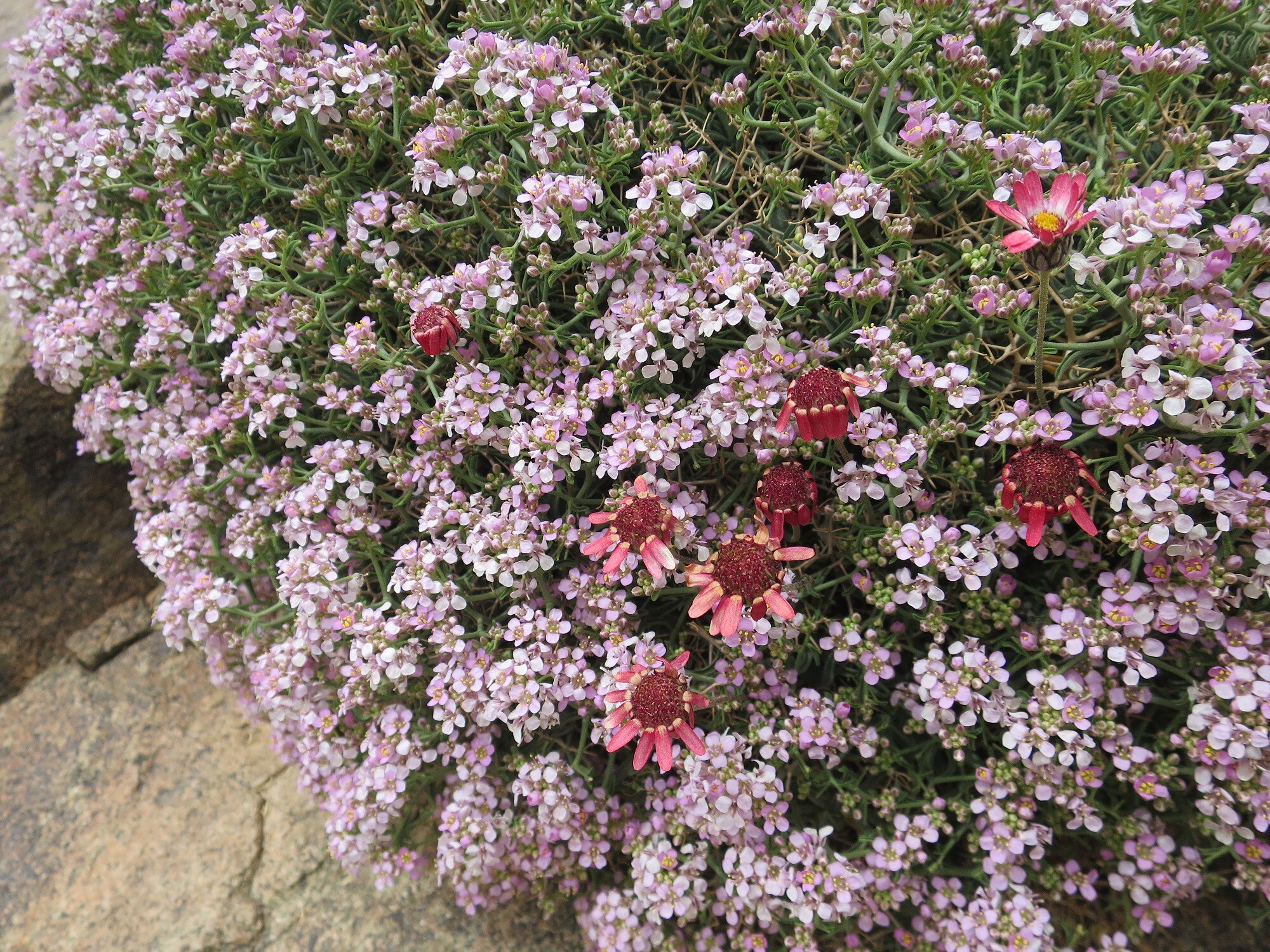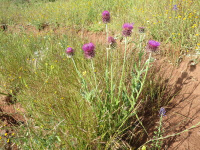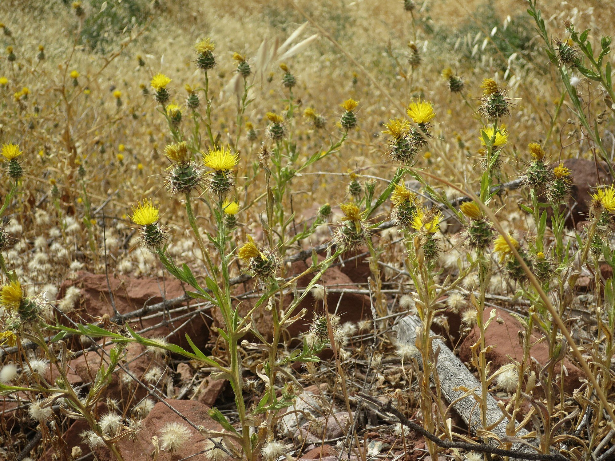 Kurz danach erreichten wir das Dorf Ouarzazt, wo das weitläufige Yagour-Plateau beginnt. Es dient den Nomaden der Umgebung als Sommerweide für ihre Tiere. Leider sind die prähistorischen Felsgravuren, die von der frühen Besiedelung dieses Ortes Zeugnis ablegen, mittlerweile durch Vandalismus zerstört. Auf dem Hochplateau erwartete uns eine sehr üppige Pflanzenwelt – Unzählige Pflanzenpolster, selbst Orchideen und diverse Liliengewächse. Mit dieser reichhaltigen Vegetation hätte keiner von uns im Hohen Atlas gerechnet. Zakaria erläuterte uns, dass der vergangene Winter auch relativ reich an Niederschlägen war. Leider zogen nun die ersten dunklen Wolken auf – Den ersten großen Regenschauer überstanden wir während unserer Mittagspause unter einem großen Nussbaum. Hier erwartete uns ein lecker zubereitetes Mittagsessen. Danach mussten wir weiterziehen – Es ging weiter durch ein üppig grünes Hochtal mit einer immensen Blumenpracht – Leider wurden wir auch immer wieder von leichten Regenschauern begleitet. Der Starkregen und die vereinzelten Gewitter blieben glücklicherweise in den höheren Bergen hängen.