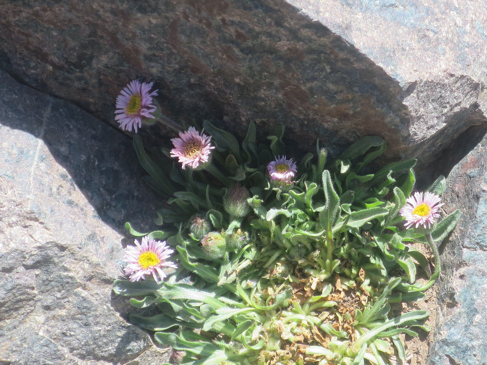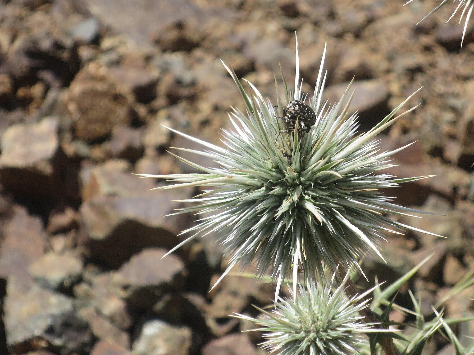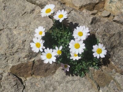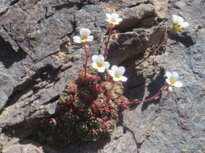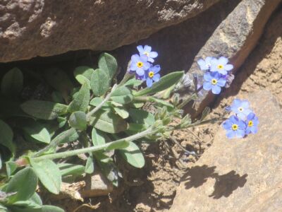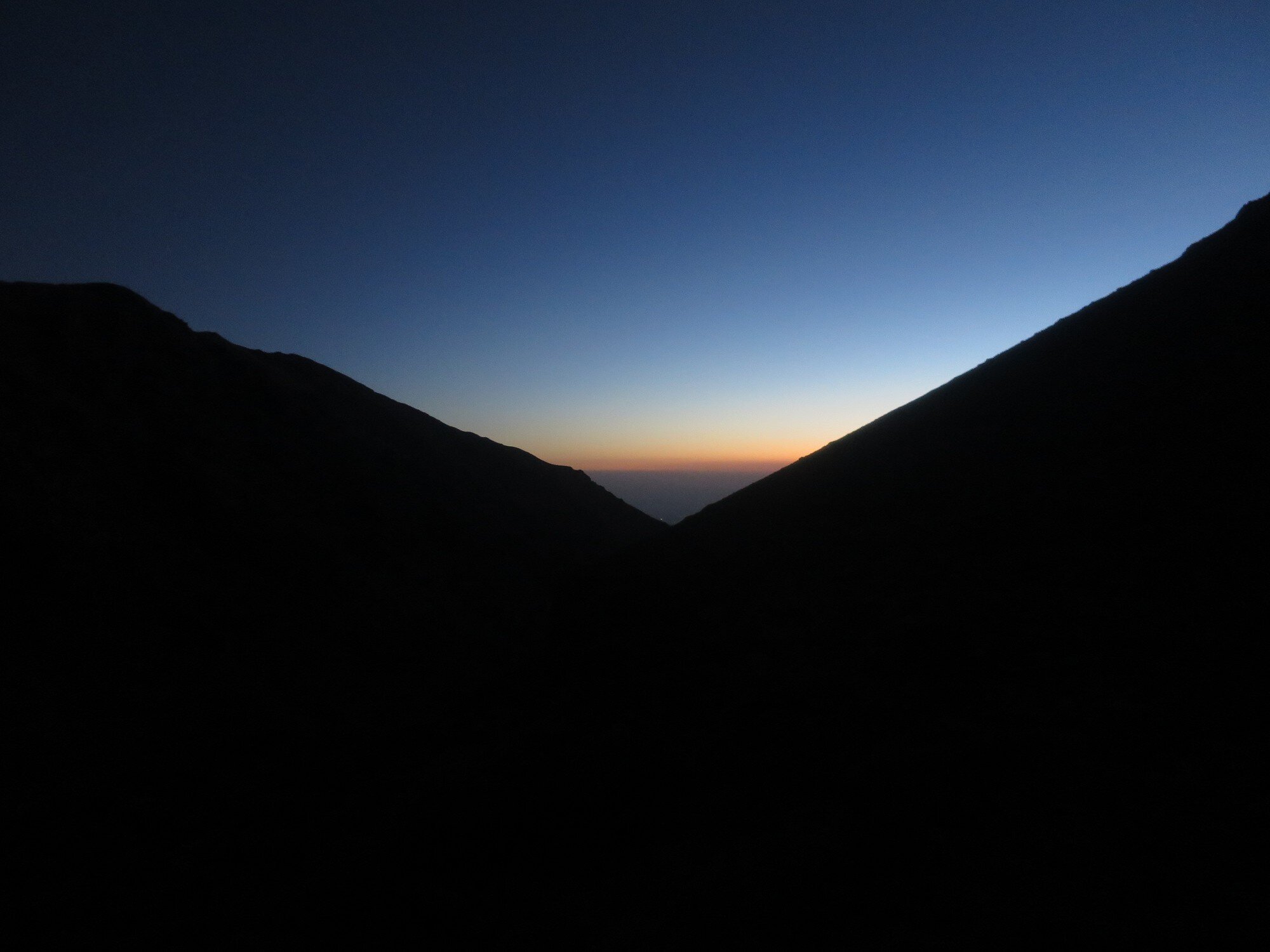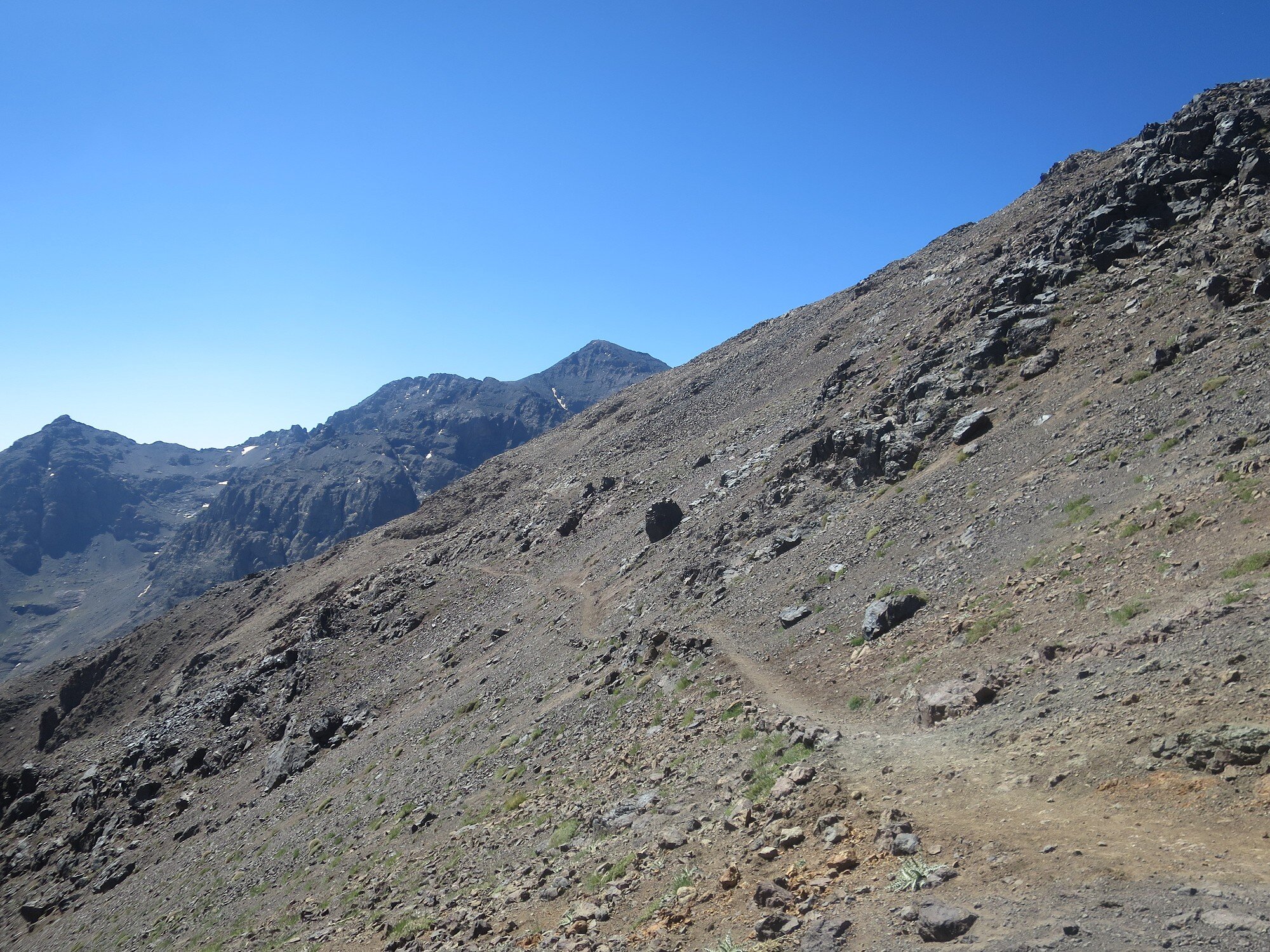 Sehr zeitig am frühen Morgen verließen wir diesen idyllischen Lagerplatz am See – die Morgenstimmung am See war unbeschreiblich schön – Doch uns erwartete ein langer Anstieg durch die Ouanoums-Schlucht bis zum 3.680 m hoch gelegenen Tizi n’Ouanoums. Der Weg dorthin war eindrucksvoll und führte stetig, teilweise in steilen Serpentinen, nach oben – Im oberen Teil des Aufstieges entdeckten wir einige (endemische) alpine Pflanzen. Vom Pass hatten wir einen wunderbaren Ausblick auf die zurückgelegte Strecke, den weit unter uns liegenden See und die umliegenden Viertausender des westlichen Hohen Atlas. In einer windgeschützten Nische am Pass gab es ein Mittagessen in Form eines Döners. Was für ein Komfort, ein Mittagessen liebevoll serviert in fast 3700 Metern Höhe! Über einen steilen Serpentinenpfad mit teilweise rutschigem Untergrund ging es hinunter zum Hochtal, in dem auch das Toubkal Base Camp (3.200 m) liegt. Ganz in der Nähe der beiden Berghütten befand sich unser Camp für die nächsten 2 Nächte. In den Hütten konnten wir uns bei einer heißen Dusche entspannen – Was für eine Wohltat nach der Katzenwäsche der letzten Tage. Von unserem Trekkingkoch Achmed und seiner Crew wurden wir mit einem feinen Abendessen (Spaghetti) verwöhnt. Diesmal legten wir uns sehr früh schlafen, denn am nächsten Morgen stand die Gipfeltour auf dem Programm.