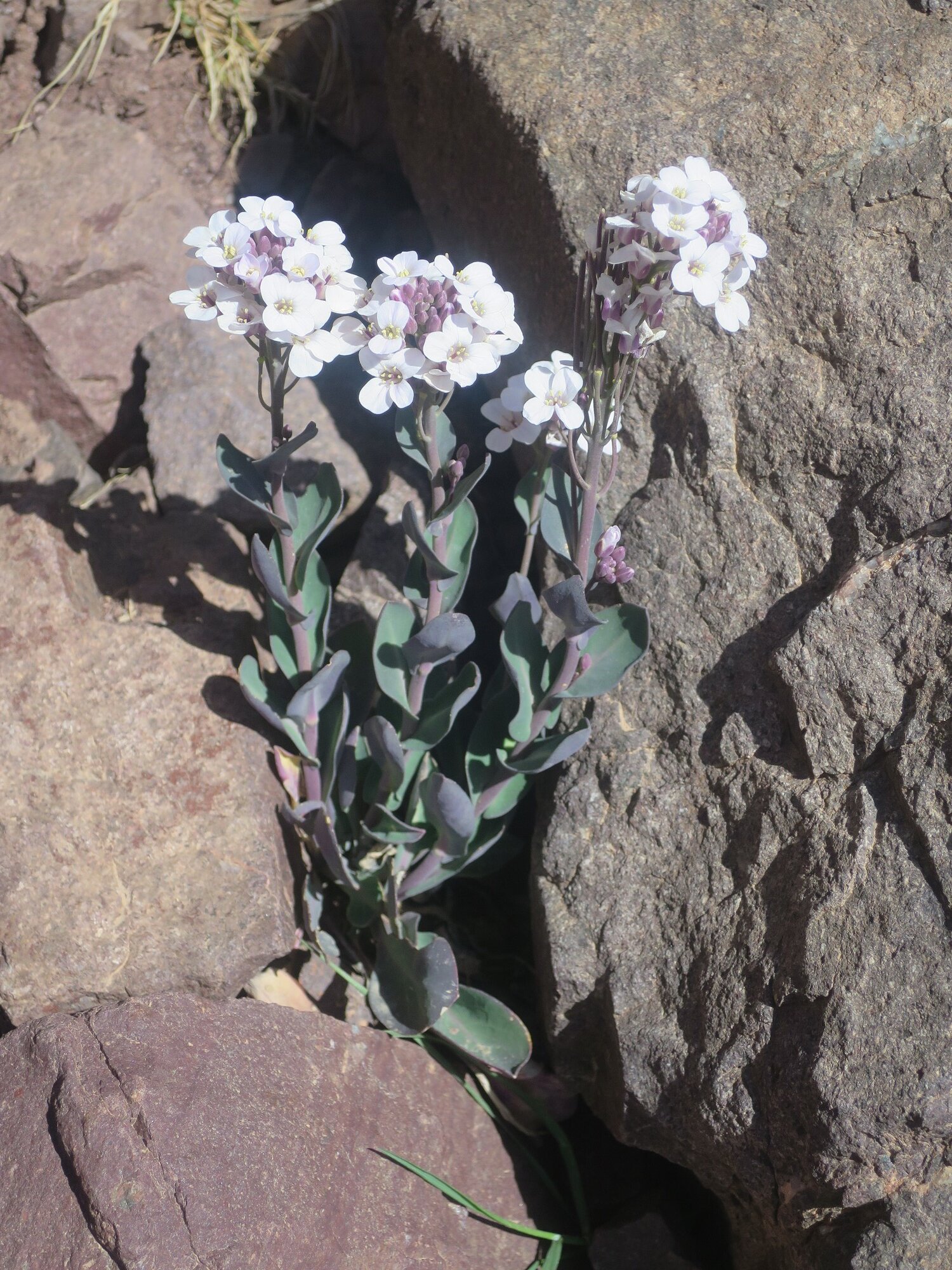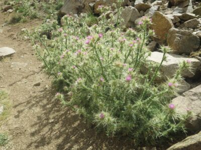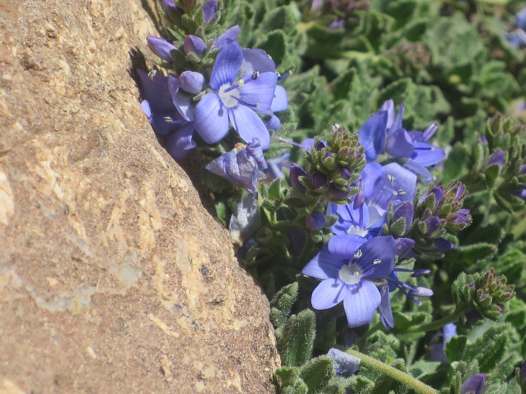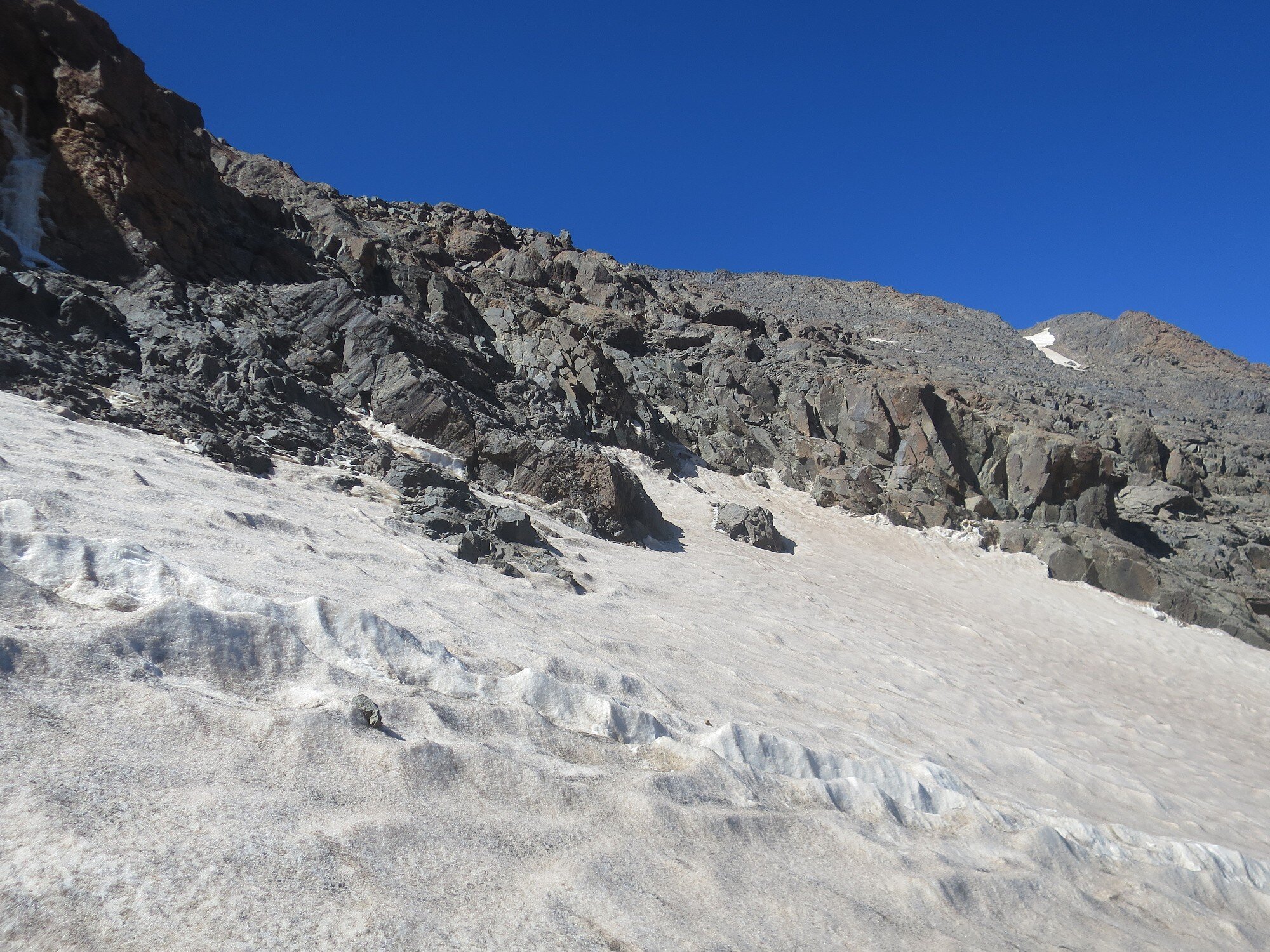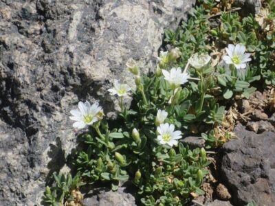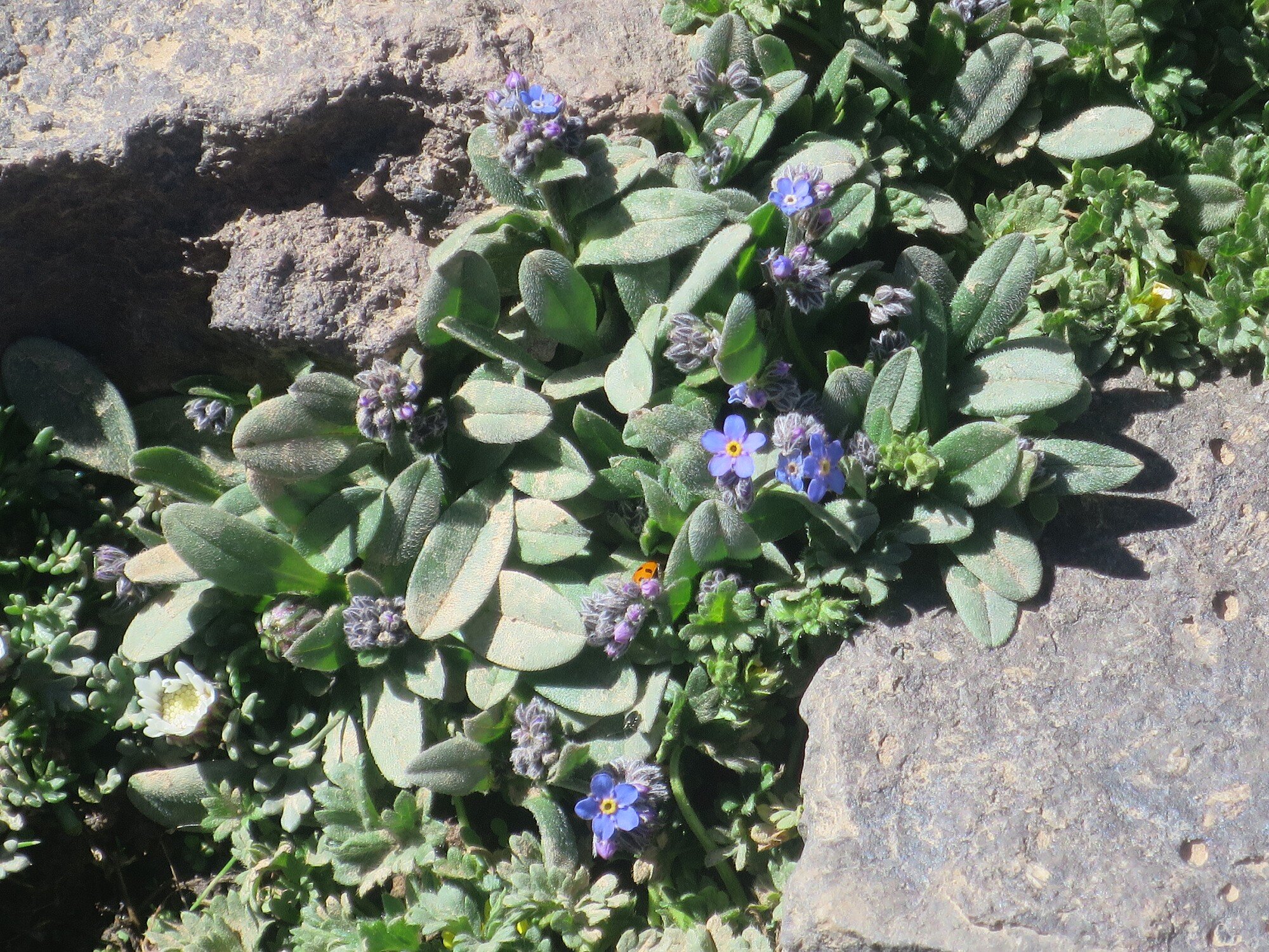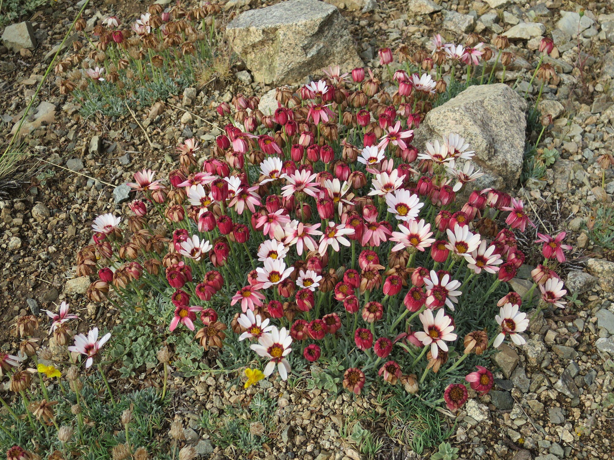 Sehr zeitig am frühen Morgen verließen wir diesen idyllischen Lagerplatz am See – die Morgenstimmung am See war unbeschreiblich schön – Doch uns erwartete ein langer Anstieg durch die Ouanoums-Schlucht bis zum 3.680 m hoch gelegenen Tizi n’Ouanoums. Der Weg dorthin war eindrucksvoll und führte stetig, teilweise in steilen Serpentinen, nach oben – Im oberen Teil des Aufstieges entdeckten wir einige (endemische) alpine Pflanzen. Vom Pass hatten wir einen wunderbaren Ausblick auf die zurückgelegte Strecke, den weit unter uns liegenden See und die umliegenden Viertausender des westlichen Hohen Atlas. In einer windgeschützten Nische am Pass gab es ein Mittagessen in Form eines Döners. Was für ein Komfort, ein Mittagessen liebevoll serviert in fast 3700 Metern Höhe! Über einen steilen Serpentinenpfad mit teilweise rutschigem Untergrund ging es hinunter zum Hochtal, in dem auch das Toubkal Base Camp (3.200 m) liegt. Ganz in der Nähe der beiden Berghütten befand sich unser Camp für die nächsten 2 Nächte. In den Hütten konnten wir uns bei einer heißen Dusche entspannen – Was für eine Wohltat nach der Katzenwäsche der letzten Tage. Von unserem Trekkingkoch Achmed und seiner Crew wurden wir mit einem feinen Abendessen (Spaghetti) verwöhnt. Diesmal legten wir uns sehr früh schlafen, denn am nächsten Morgen stand die Gipfeltour auf dem Programm.