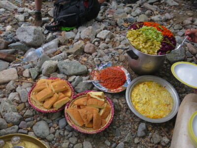 Die Morgenstimmung auf unserem „Zeltplatz“ war unbeschreiblich schön – vor allem auch aufgrund der Morgensonne und der üppigen Vegetation. Nach einem wieder sehr liebevoll und unter wirklich einfachsten Bedingungen servierten Frühstück starteten wir zu unserer nächsten Trekking-Etappe: