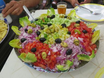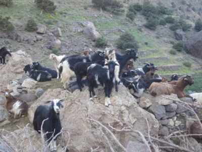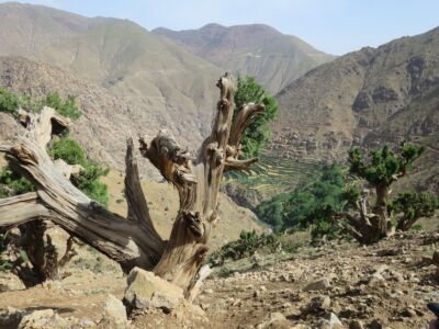 Der letzte Wandertag war angebrochen und wir verabschieden uns langsam vom Atlas. Durch ein Gebiet mit knorrigen Bäumen führte die Route nochmals ein Stück aufwärts, bis wir den Tizi M’zik (2.469 m) erreichten. Von hier genossen wir die phantastische Aussicht auf das vor uns liegende Imlil-Tal und zum letzten Mal die leckere Nüsschen-Pause mit Zakaria. Anschließend führte uns unser Weg abwärts bis zum Dorf M’zik und weiter bis Imlil, dem Ausgangspunkt für die meisten Besteigungen des J. Toubkal. Unter schattenspendenden Bäumen gab es nochmals ein landestypisches Mittagsessen. Unter tosenden Applaus und gleichzeitig voller Herzlichkeit verabschiedeten wir uns von der tollen Mannschaft (Küchenteam und Muli-Treiber).