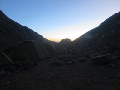 Nach einem feinen Abendessen legten wir uns zeitig schlafen, schließlich haben wir an diesem Tag auch einiges geleistet. Leider war die Nacht aufgrund eines kräftigen Sturmes durchwachsen – Der Wind blies gnadenlos an unsere Zelte, einer Person zerriss es sogar die Außenhülle. Glücklicherweise regnete es nach diesem Vorfall nicht mehr.