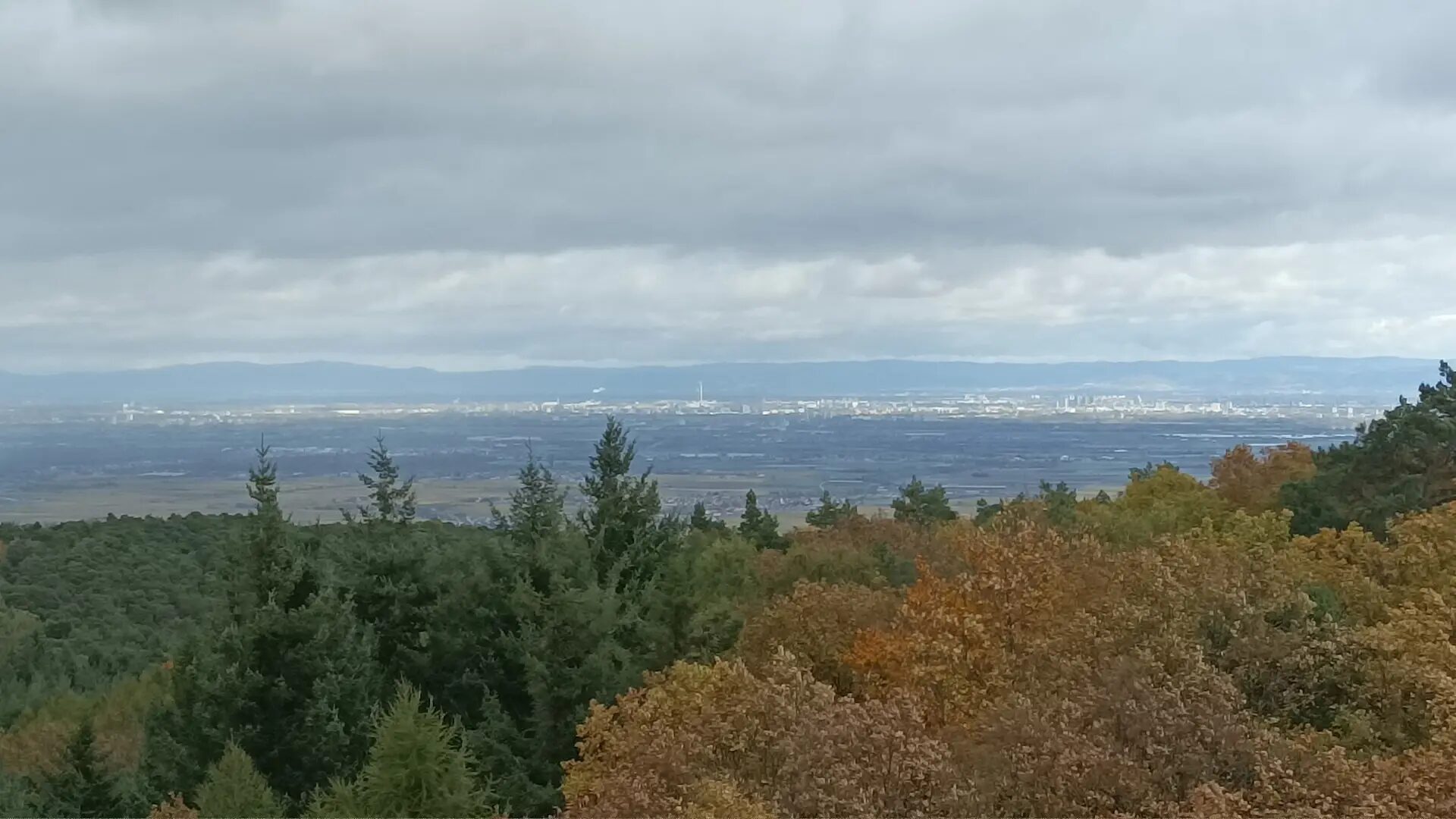 Ausblicke: Rheinebene, Vogesen, Hornisgrinde, Schloss Staufenberg.