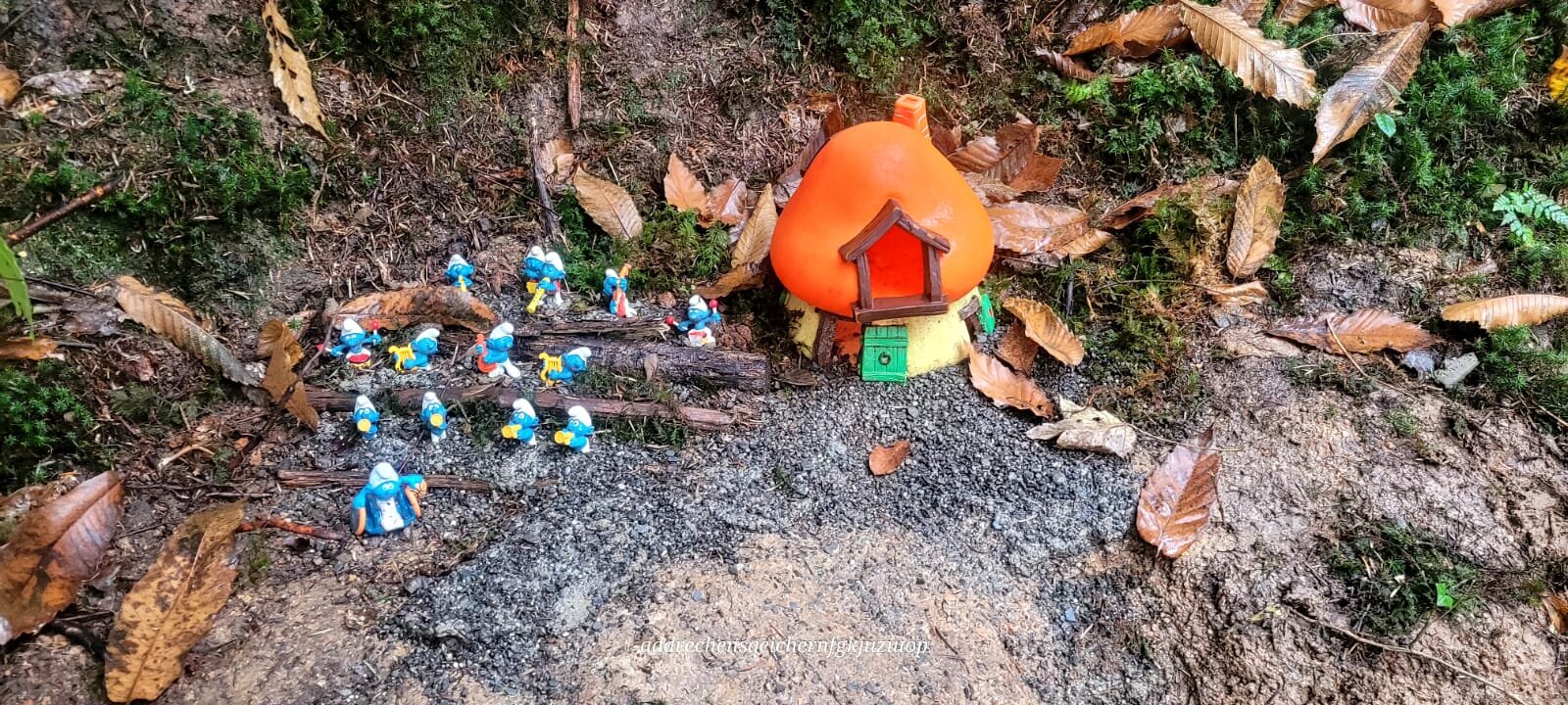 Die abwechslungsreiche Route führte uns durch lichte Weinberge, die das Licht einfingen, und in schattige, märchenhafte Wälder. Ein besonderes Highlight war der „Schlumpffad“ am Kahler Bach. Dieser verspielte, dekorierte Waldpfad mit seinen Bachquerungen und dem sehenswerten Kahlenbacher Wasserfall weckte das Kind in uns und sorgte für heitere Momente.