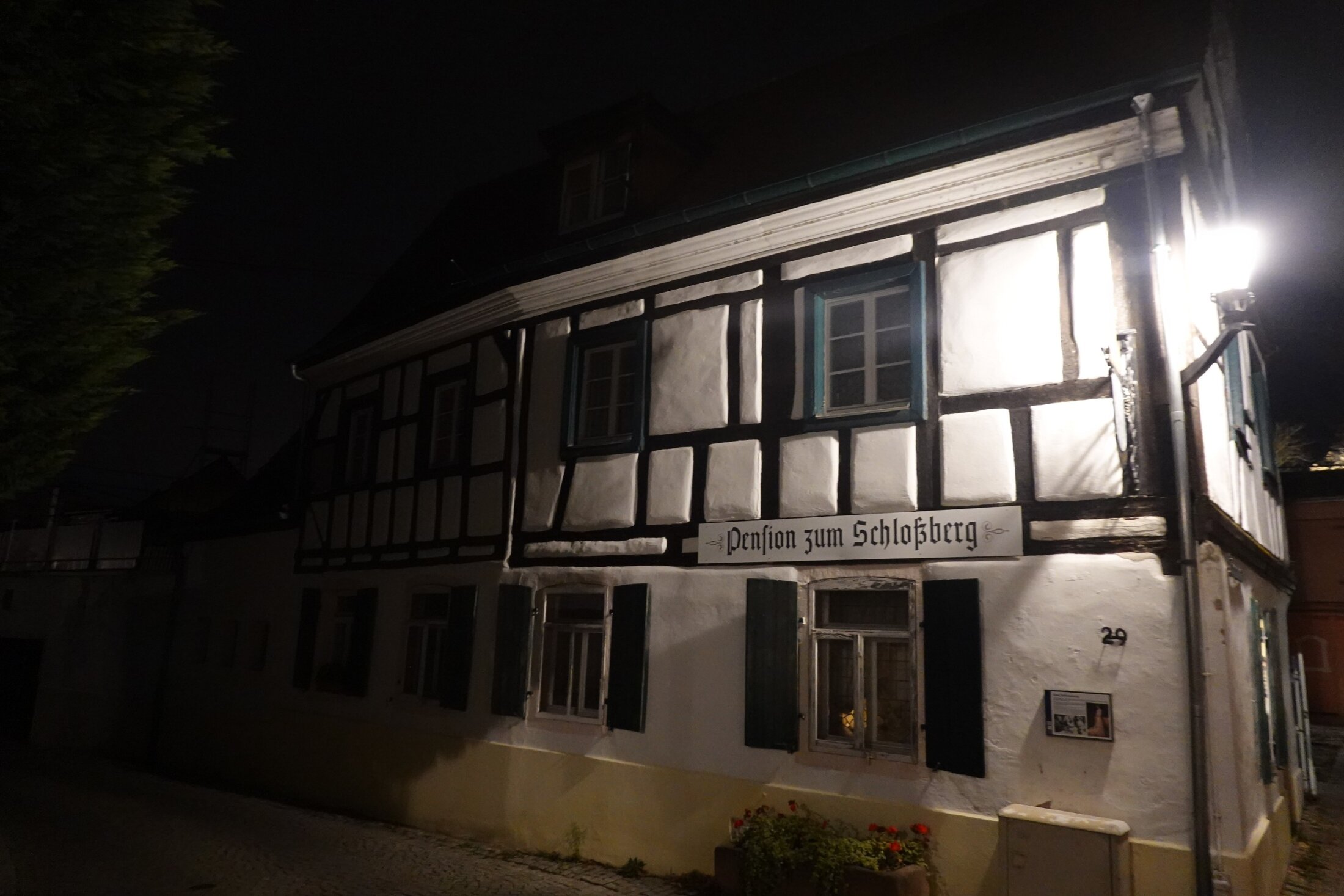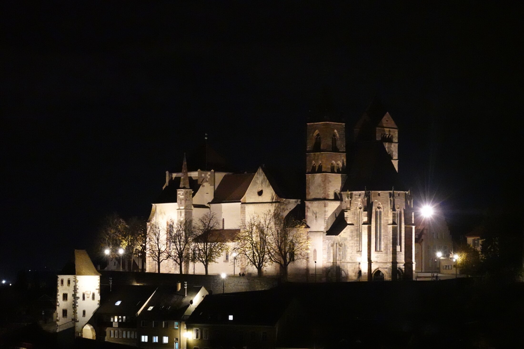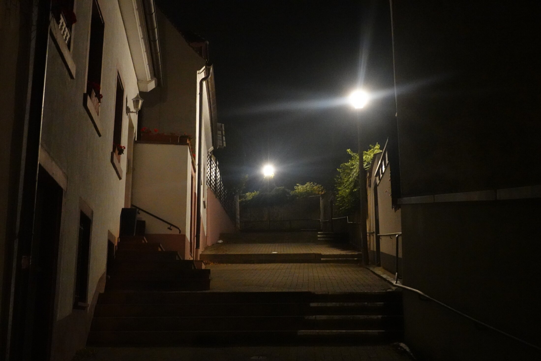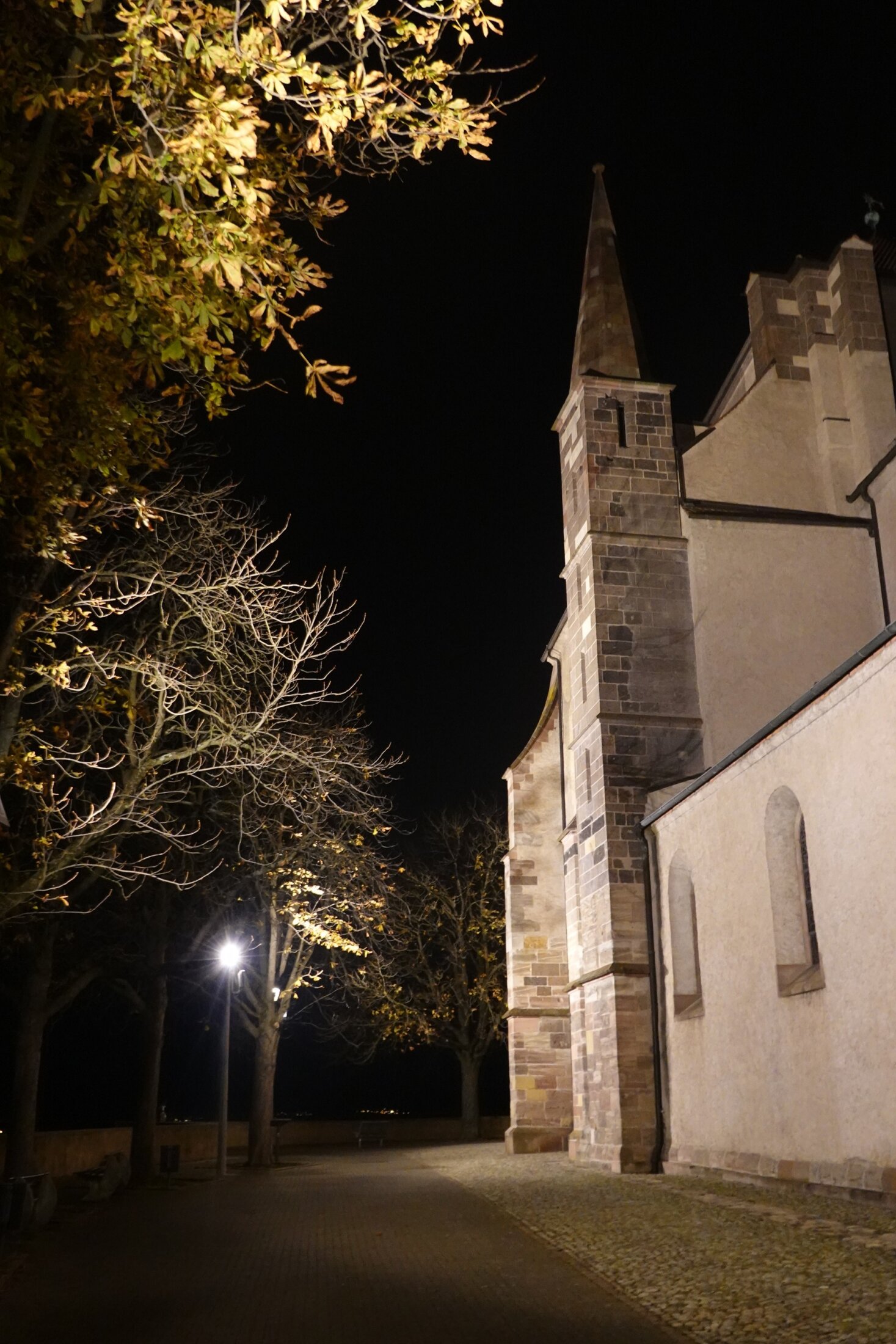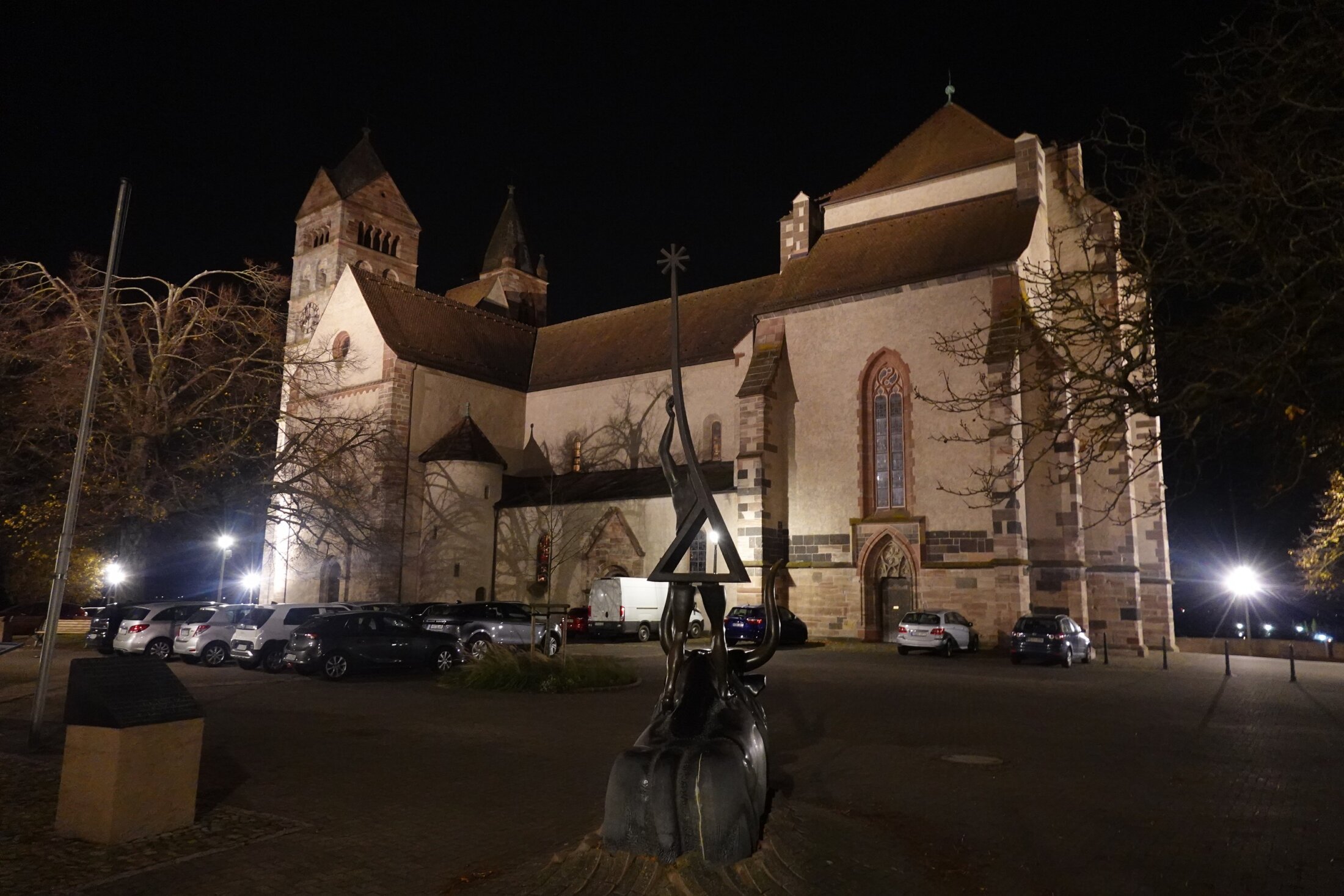 Nach einer kurzen Begrüßung ging´s los: Vom Bahnhof liefen wir vorbei am „Tabac-Shop“. Nächstes Ziel war der Eckartsberg, den wir im Scheine unserer Stirn- und Taschenlampen erreichten. Wir genossen den Blick hinüber zum gegenüberliegenden Münsterberg und über die Dächer von Breisach. Es folgt ein kurzer Abstieg Richtung Marktplatz, danach stiegen wir über mehrere Treppen (Schänzeltreppe) hinauf zum Münsterberg. Die Fassade vom Stephansmünster war hell beleuchtet und somit sehr fotogen. Wir schlenderten danach zum Gelände der Breisacher Festspiele. Über den Radbrunnenturm spazierten wir zurück zum Münster und danach ging es über die Münsterbergstraße zurück in die Innenstadt. Jetzt war es nicht mehr weit bis zum Bahnhof – Eine gelungene Afterwork-Wanderung fand hier ihren Abschluss…