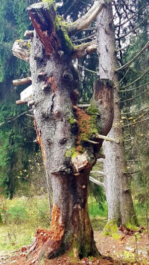 Die vielleicht tiefste Erfahrung des Tages war die lyrische Einkehr während der Wanderung. An einem besonders stimmungsvollen Ort im Herzen des Waldes hielt der Autor Gerd Groß eine eindrucksvolle Lesung. Passend zur mythischen Atmosphäre trug er Texte aus seinen Werken vor, darunter Passagen aus „Tage des Donners“ und „Days of Thunder“. Die Verbindung des geschriebenen Wortes mit der majestätischen Kulisse des Waldes schuf einen magischen Moment. Für Interessierte an seinem Schaffen sei auf seine literarische Galerie verwiesen: