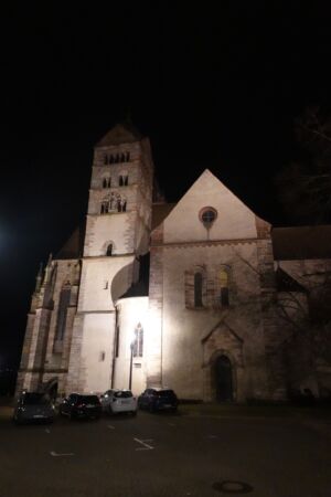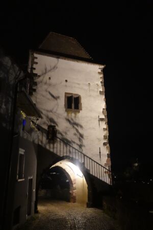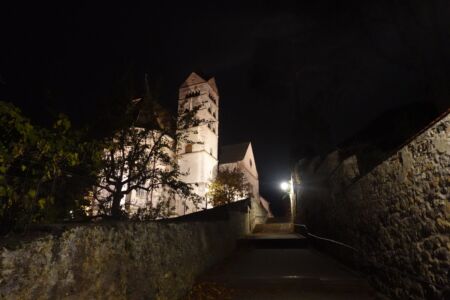 Nach einer kurzen Begrüßung ging´s los: Vom Bahnhof liefen wir vorbei am „Tabac-Shop“. Nächstes Ziel war der Eckartsberg, den wir im Scheine unserer Stirn- und Taschenlampen erreichten. Wir genossen den Blick hinüber zum gegenüberliegenden Münsterberg und über die Dächer von Breisach. Es folgt ein kurzer Abstieg Richtung Marktplatz, danach stiegen wir über mehrere Treppen (Schänzeltreppe) hinauf zum Münsterberg. Die Fassade vom Stephansmünster war hell beleuchtet und somit sehr fotogen. Wir schlenderten danach zum Gelände der Breisacher Festspiele. Über den Radbrunnenturm spazierten wir zurück zum Münster und danach ging es über die Münsterbergstraße zurück in die Innenstadt. Jetzt war es nicht mehr weit bis zum Bahnhof – Eine gelungene Afterwork-Wanderung fand hier ihren Abschluss…