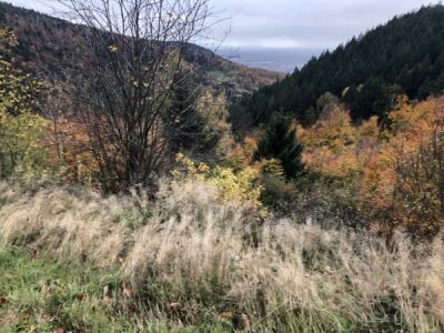 Auf unserer Panoramarunde wanderten wir einmal 360 Grad um das bezaubernde Blumen- und Weindorf Sasbachwalden. Die Runde war ungemein aussichtsreich und sehr abwechslungsreich: Wir liefen durch Weinberge, Wiesen und auch durch schöne Wälder. Auf dem Waldboden lagen unzählige Esskastanien und wir entdeckten auch den einen oder anderen Pilz. Trotz der kontinuierlichen Bewölkung hatten wir die meiste Zeit schöne Ausblicke über Sasbachwalden bis hinüber ins Elsass. An einem schön gelegenen Schnapsbrunnen machten wir unsere Vesperpause. Wir erweiterten allerdings die offizielle Tour um ca. 200 Höhenmeter auf teilweise steilen Pfaden. Dafür hatten wir am höchsten Punkt der Wanderung einen wunderschönen Ausblick. Danach liefen wir auf direktem Wege bergab zum Spinnerhof, wo bei Kaffee, Kuchen und Bier unsere Einkehr stattfand. Danach ging es entlang der Gaishöll-Wassserfälle abwärts bis zum Ausgangspunkt.