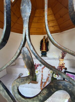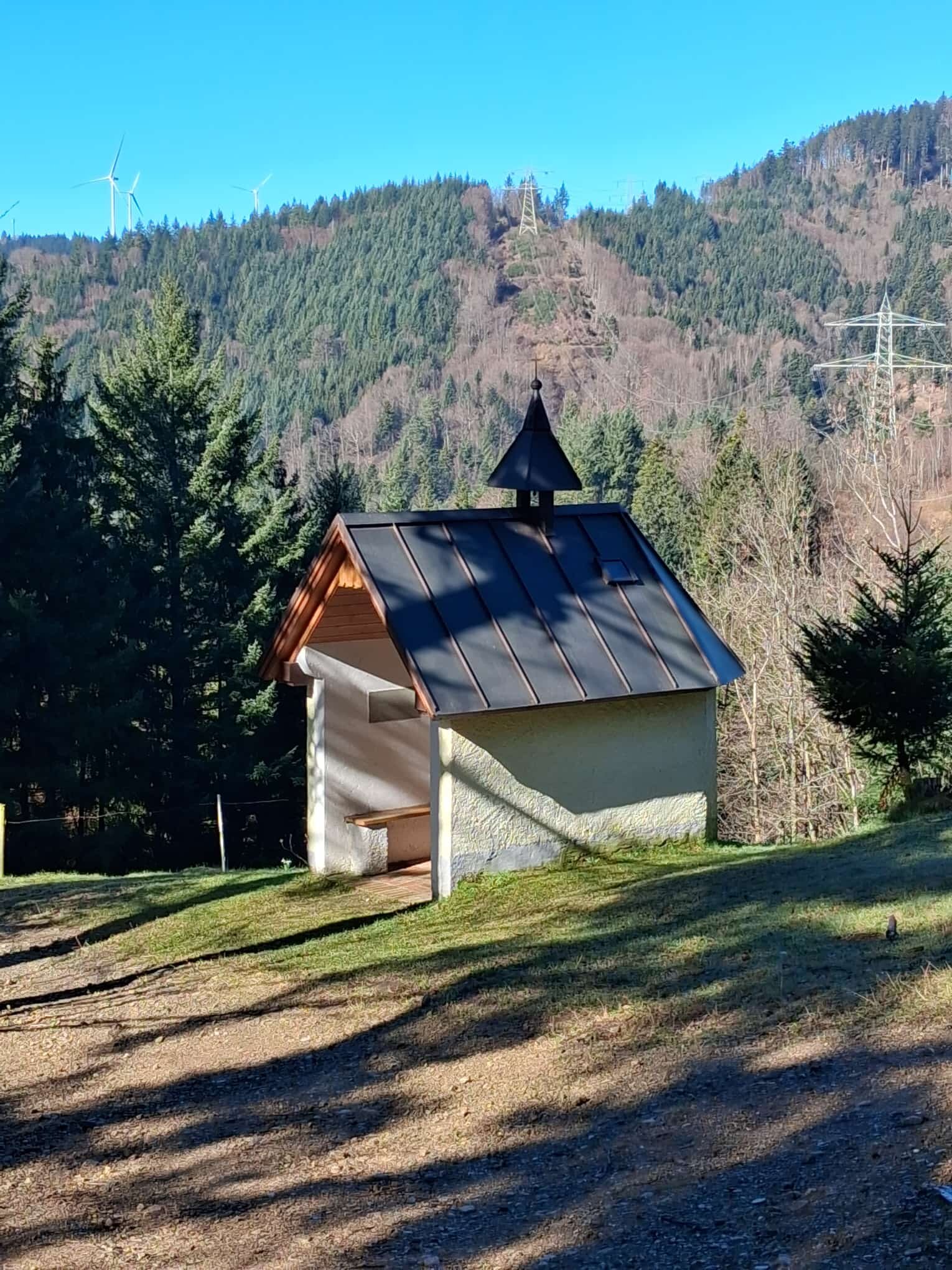Vom Bahnhof in Kirchzarten ging es die Straße entlang bis Stegen. Durch Stegen durch und nun begann die reizvolle Tour. Auf schattigen und sonnigen, teilweise schmalen Wald- und Wiesenwege, ging es oberhalb von Reckenberg und Scherereck zur Schlangenkapelle. Der Weg führte uns am Waldkindergarten und verschiedenen Grillplätzen vorbei. An der Schlangenkapelle konnten wir unser Vesper in der Sonne und schönen Holzbänken mit Tisch, genießen. Auch der Eierlikör wurde gern getrunken, da wir nur noch ca. 40 Höhenmeter vor uns hatten.