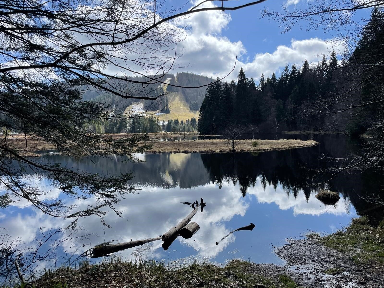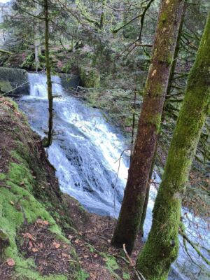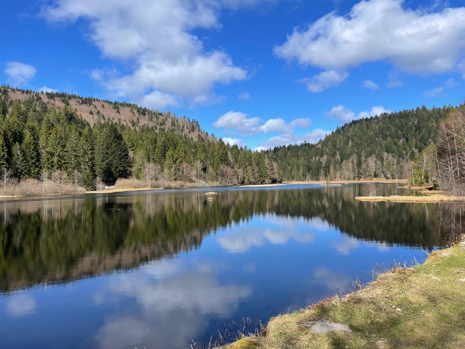 Am Donnerstag waren wir auf dem Markt in Gerardmer. Käse, Wein, Honig und vieles mehr sind ein Muss in den Vogesen. Eine moderne Kirche vor dem Markt hat mein Herz berührt. Danach saßen wir in der Sonne vor einem Café Brasserie de L’Hotel de Ville mit der heißen Schokolade oder mit einem leckeren Kaffee. Direkt danach ging es zu dem Startpunkt unserer nächsten Wanderung: See von Lispach. Das war die längste Runde der Woche, sehr abwechslungsreich und wunderschön. Das war die Wanderung, wo wir am meisten Fotos gemacht haben. Die Wanderung hat ungefähr 4,5 Stunden gedauert, die Länge der Strecke war um die 18 km bei dem Höhenunterschied 350 m.