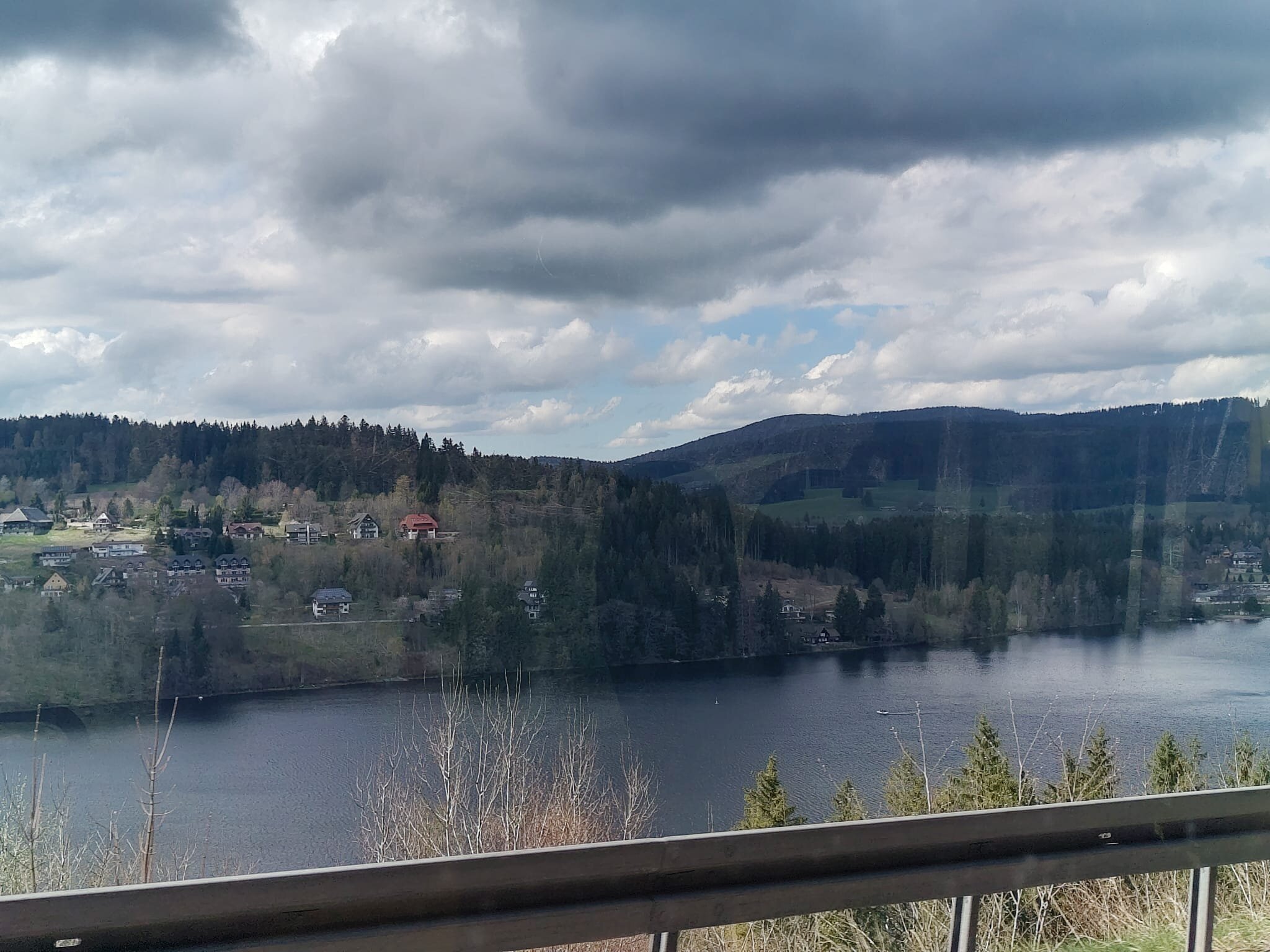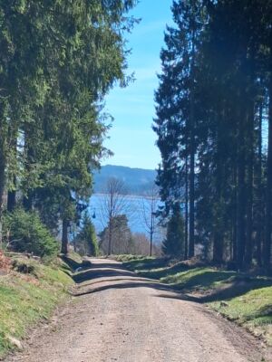 Vom Bahnhof Aha ging es etwas am Seeufer des Schluchsees entlang. Über die Straße, Lachenrütte und Hohlgasse zur Bärhalde. Von hier hatten wir einen super schönen Blick auf den Schluchsee. Durch den Regen wollten wir aber nur sehr kurz verweilen.