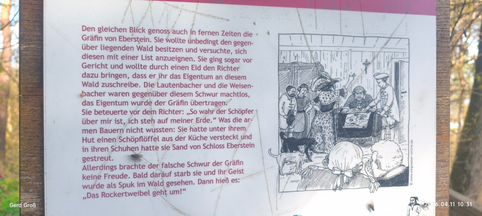 Vom Kriegerdenkmal aus führte die Route, stets begleitet vom markanten Teufelchen-Symbol, steil hinauf in die Kulisse des Murgtals. Das Herzstück der Wanderung bildeten die packenden Hörspielsagen: An den Stationen wurden die Legenden von Gerd Groß akustisch zum Leben erweckt. Besonders am spektakulären Grafensprung fesselte die mystische Inszenierung die begeisterten Mitwanderer.