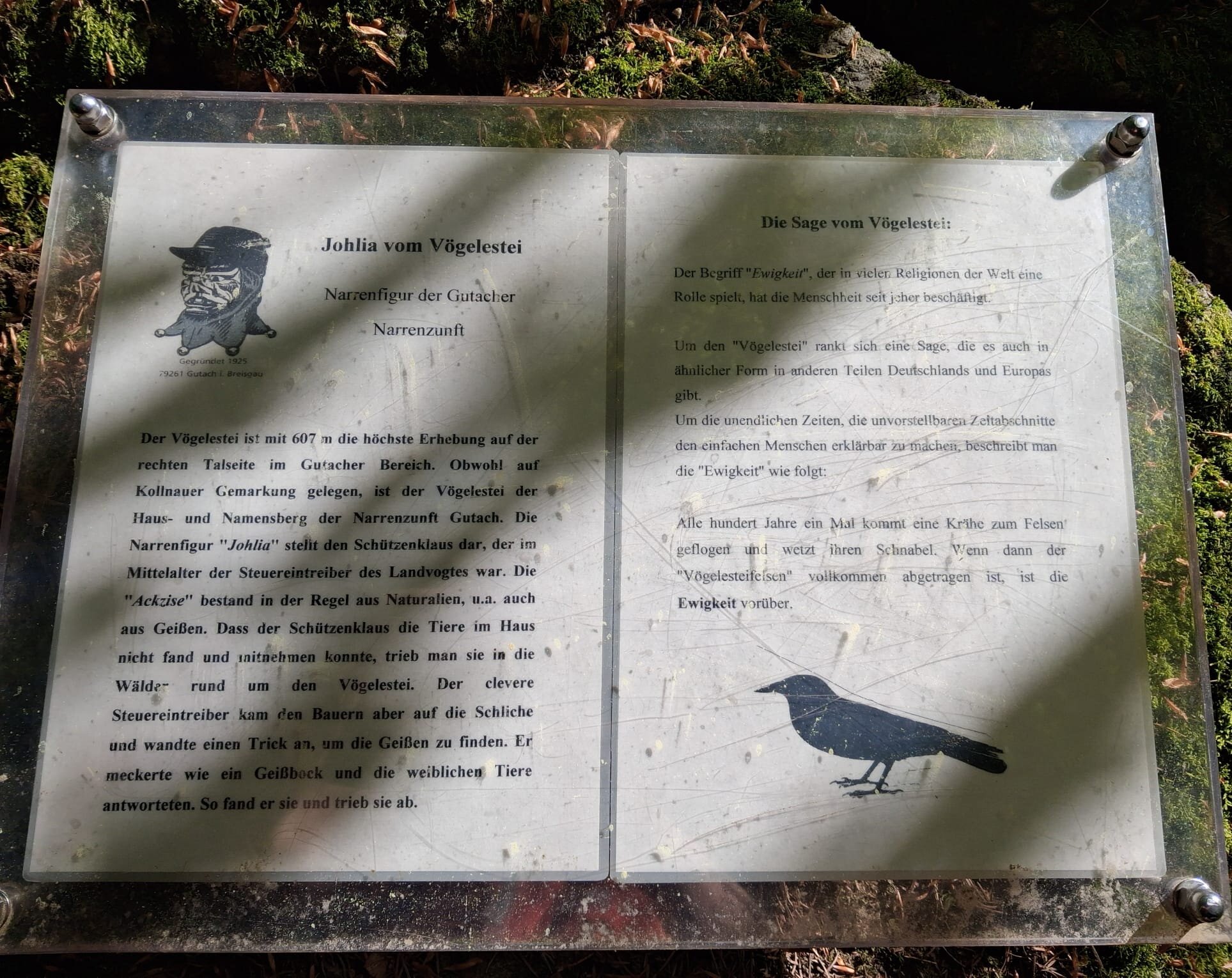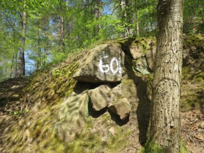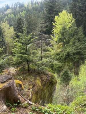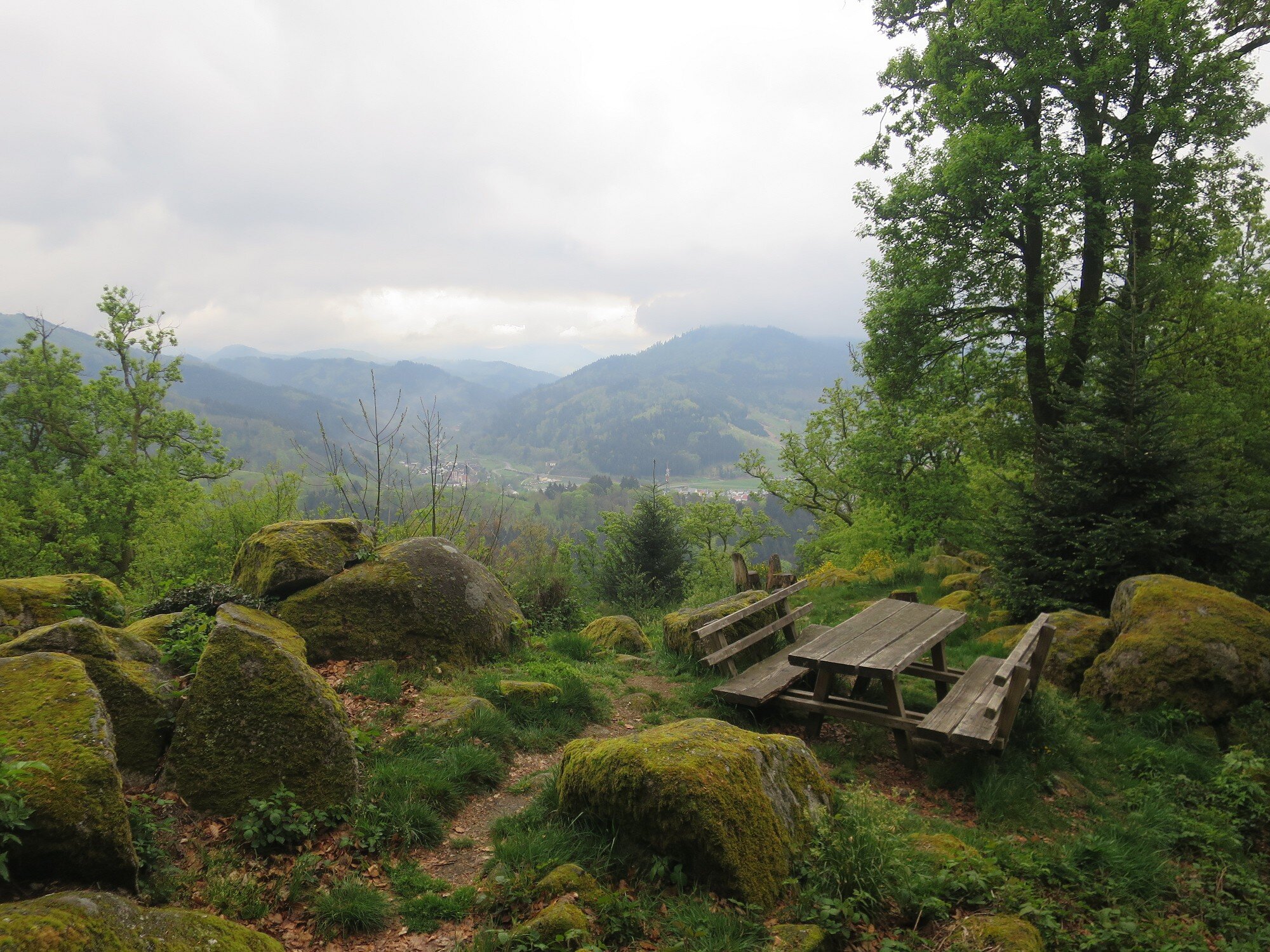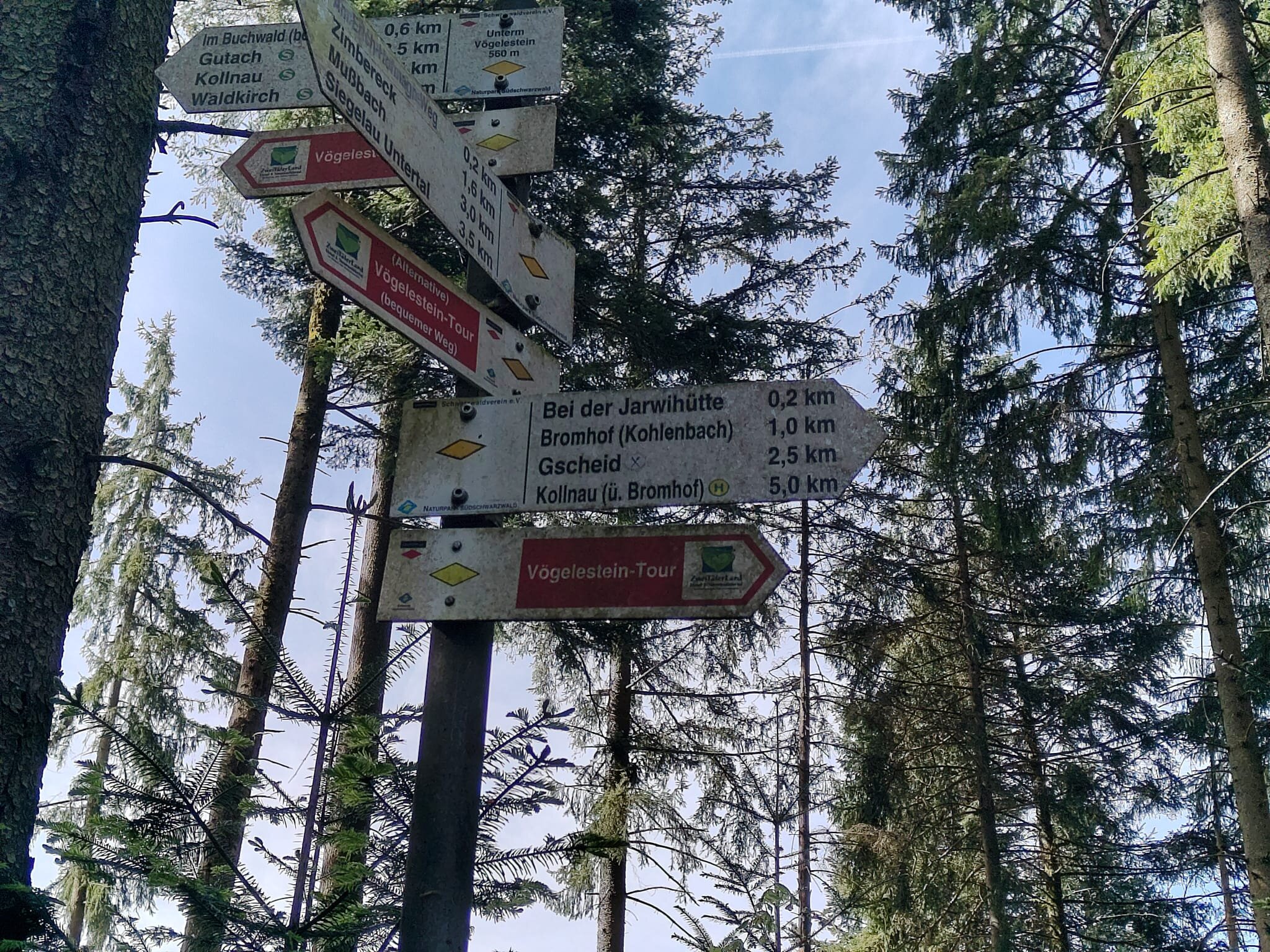 Vom Bahnhof in Gutach ging es ein Stück die Elz entlang. Nun ging es steil bergan. Erst ein Stück Straße und dann in den Wald. Mit teilweise starken Anstiegen erreichten wir den Vögelestein. Von unten könnte man es als ein schlafendes Vögelein interpretieren. Wenn man oben angekommen ist, sind es halt Felsen. 🤣