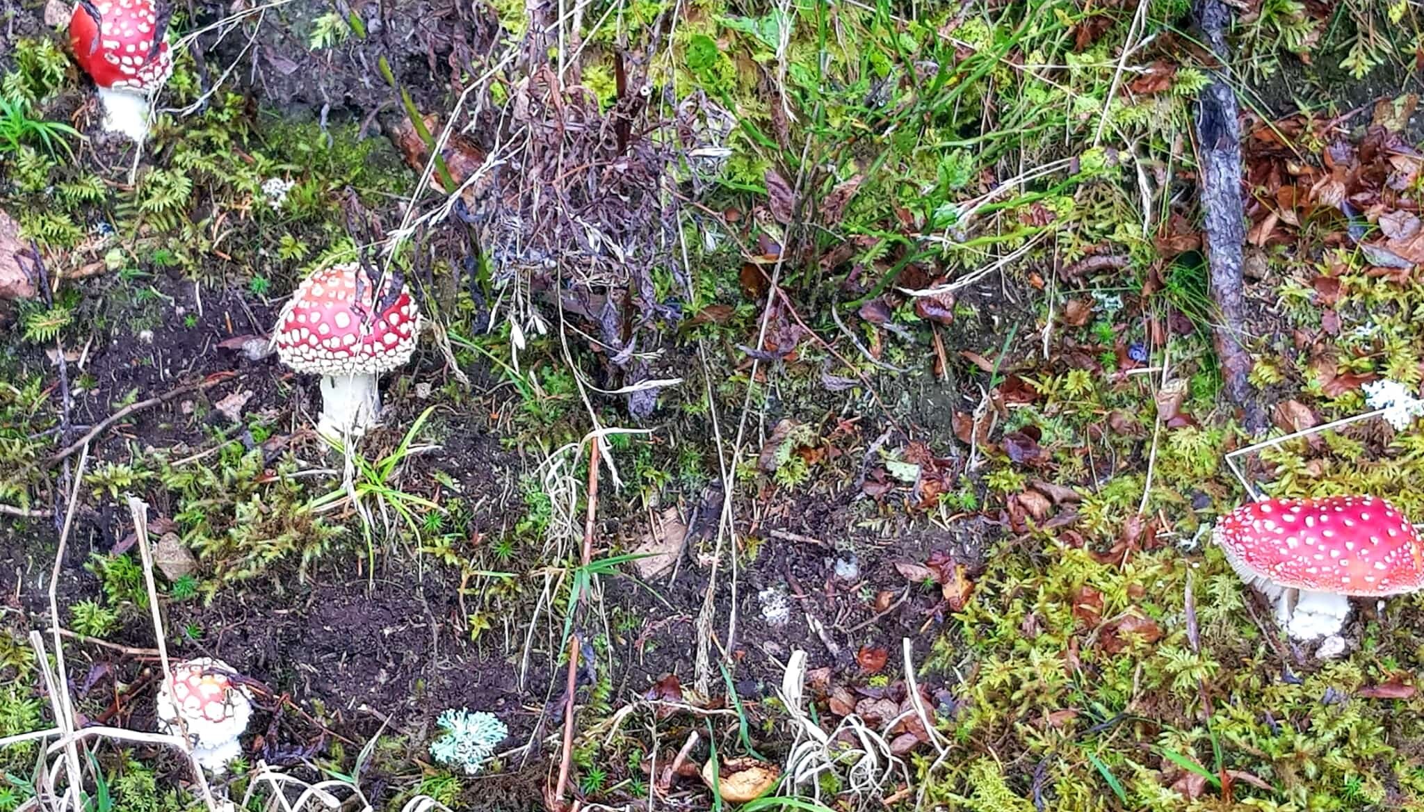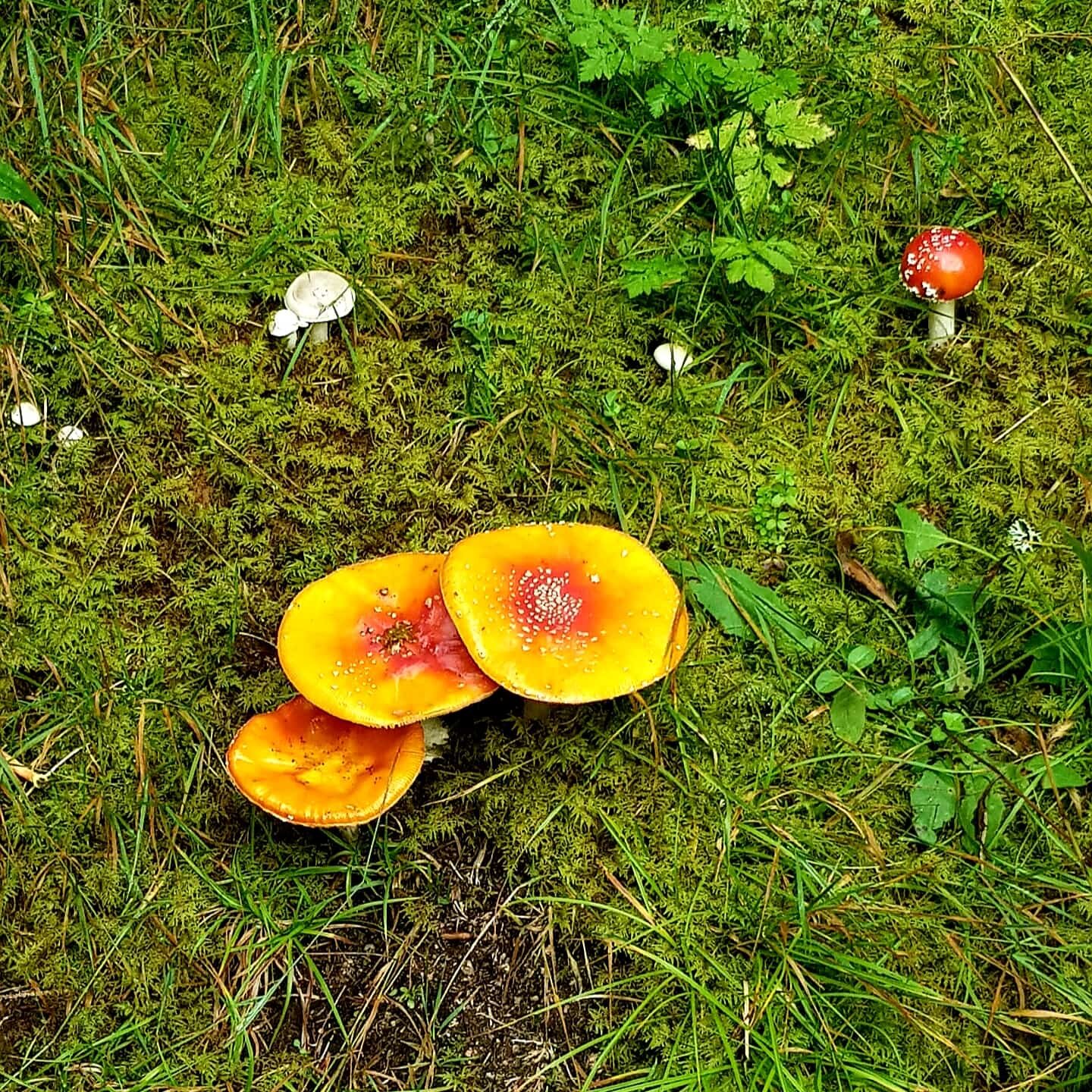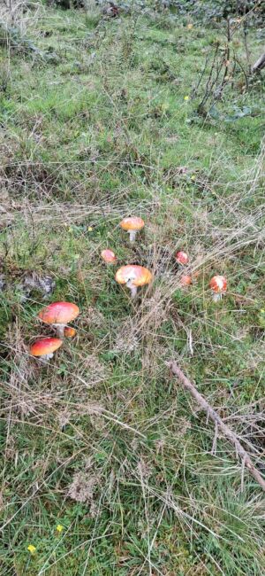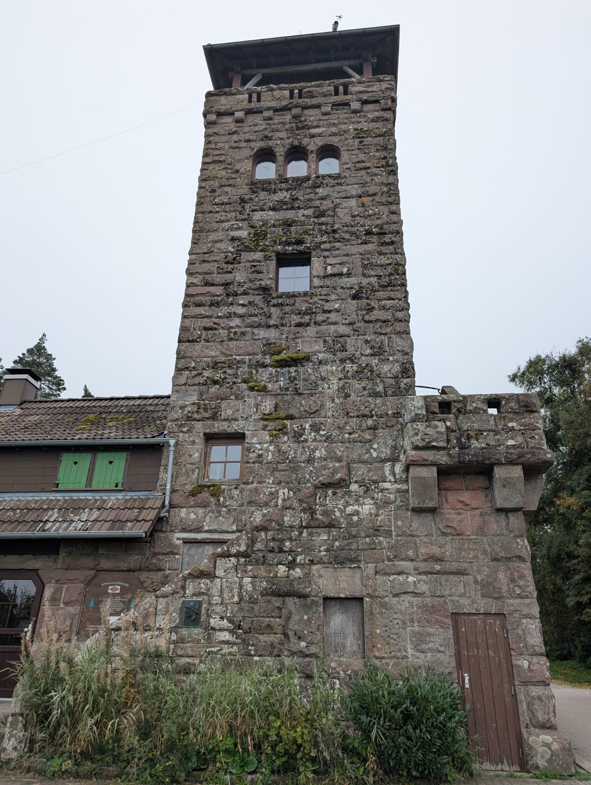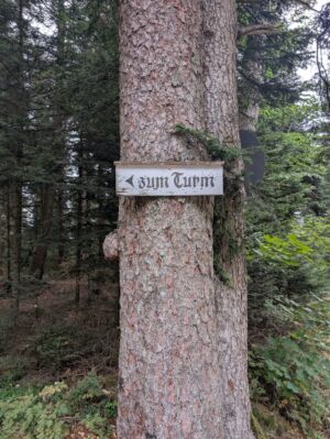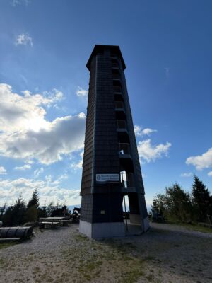 Vom Bhf ging es die Saiger Straße entlang auf schmalen Wegen in den Wald. An einem kleinen Bach entlang und mit vielen Pilzen, die rechts und links die Waldwege säumten, den Turmweg bis zum Hochfirst. Der neue Turm ist noch durch einen Zaun gesichert. Der alte Turm soll dann später wieder begehbar sein. Da wir noch etwas Nebel hatten, war die Sicht auf den Titisee noch nicht ganz so schön. Über das Waldhaus ging es dann den Saiger Weg zum Saiger Kreuz. Die Sonne hatte sich nun durchgesetzt und es war richtig warm geworden. Am Saiger Kreuz bin ich falsch abgebogen und wir sind leider nicht über das Schwedenkreuz und den Mühlenrain gekommen.
