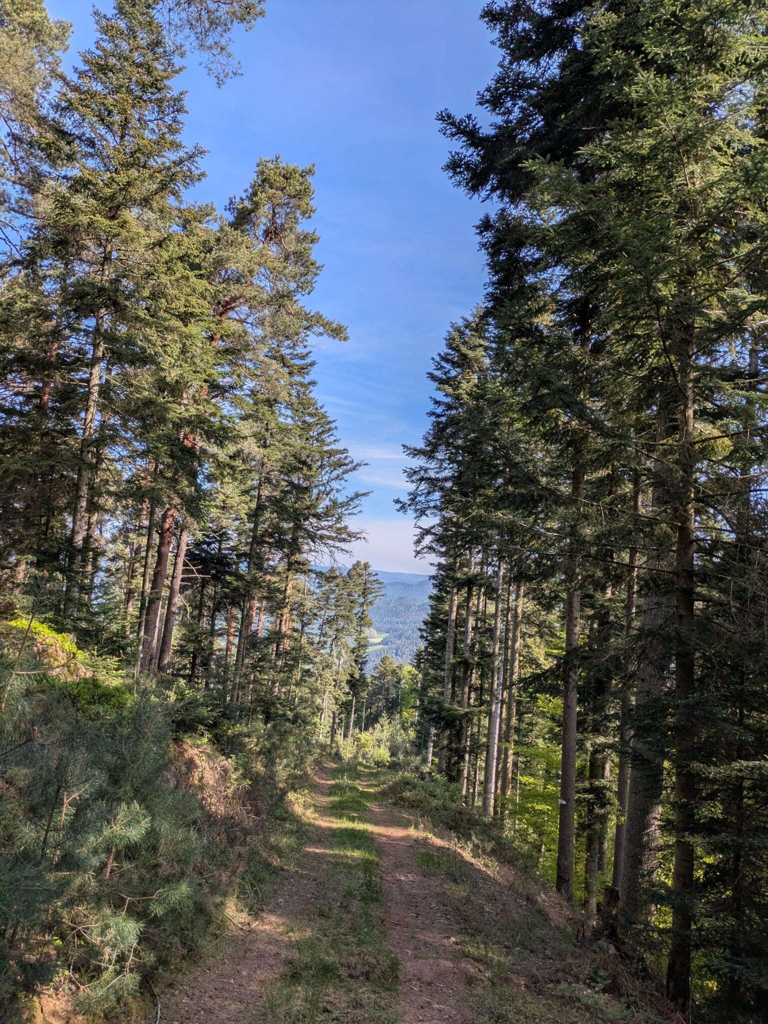 Über Kurihof und Bromhof kommen wir zum Blasiwald. Am Waldrand, oberhalb der Ortschaft Kollnau gewinnt der Weg noch mal kurz an Höhe. Nun haben wir es fast geschafft. Meter für Meter stiegen wir auf schmalen Pfad nach Gutach ab.