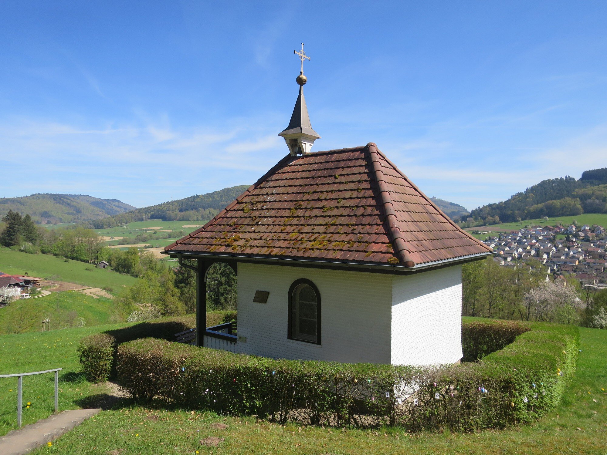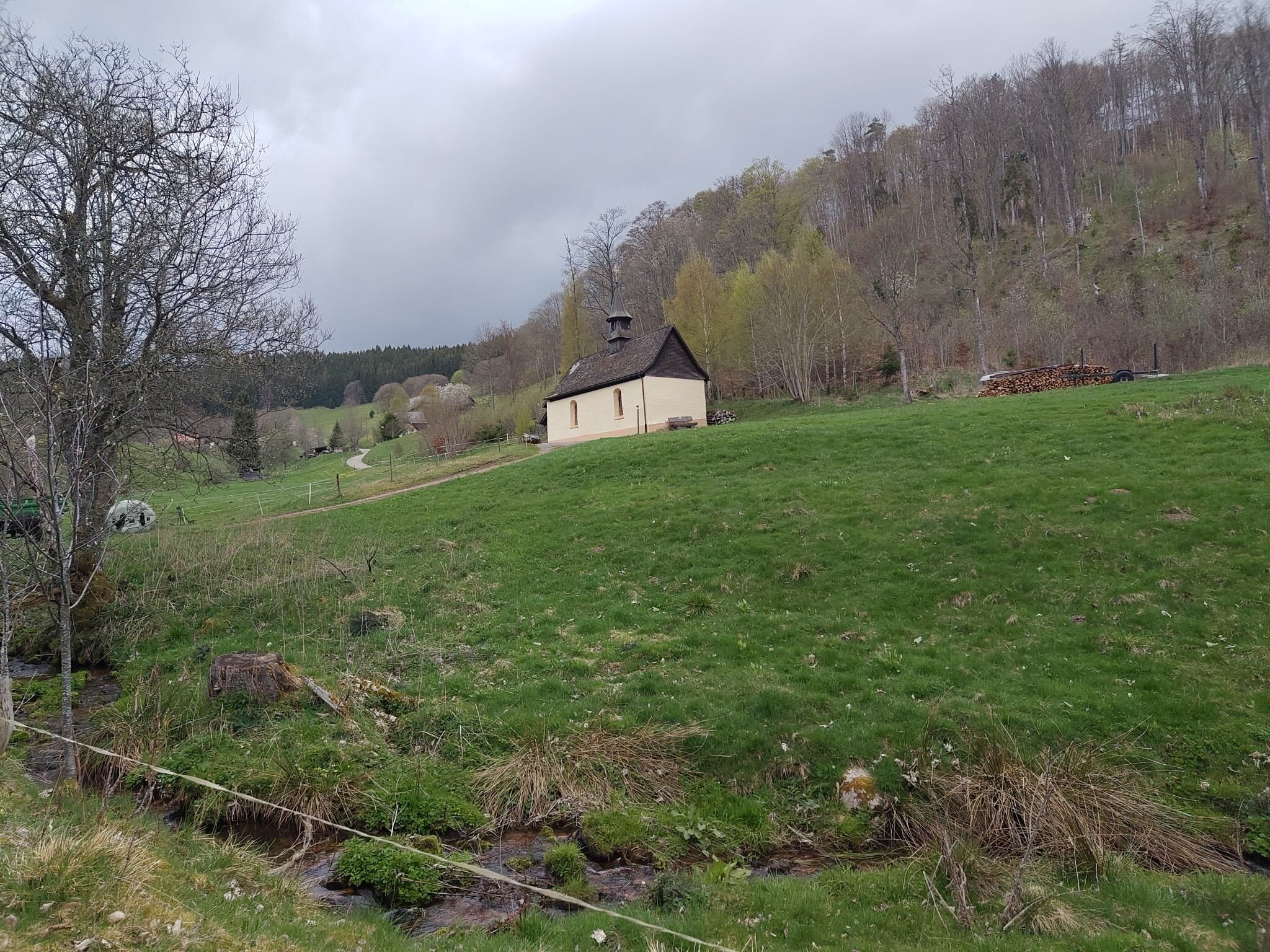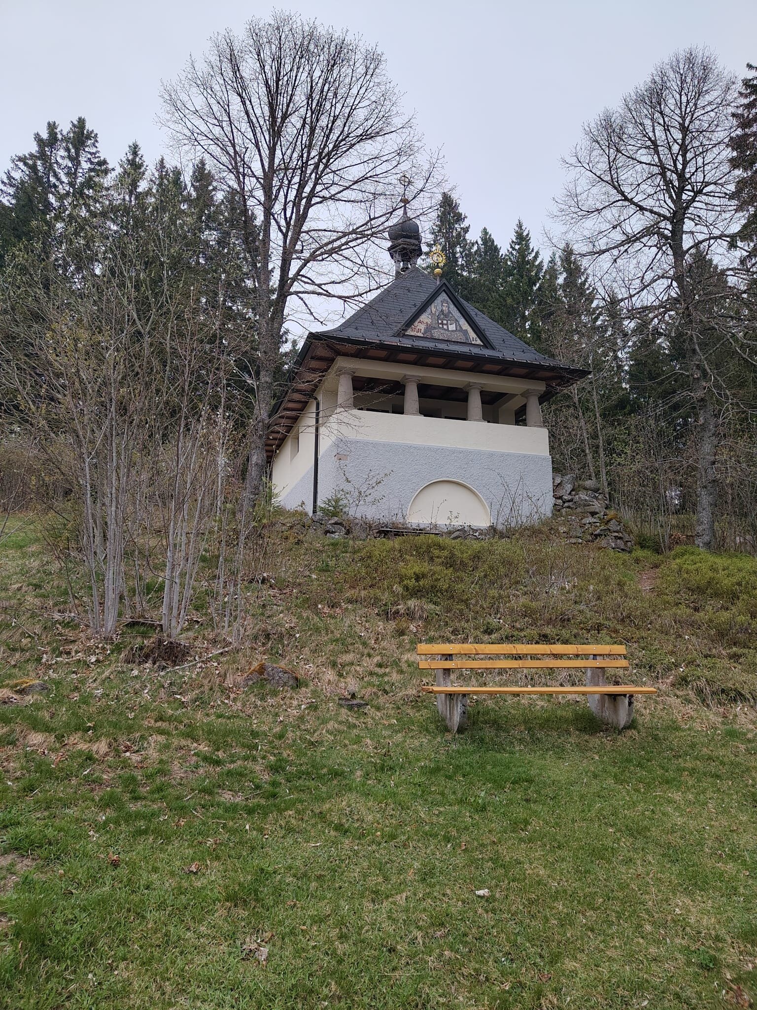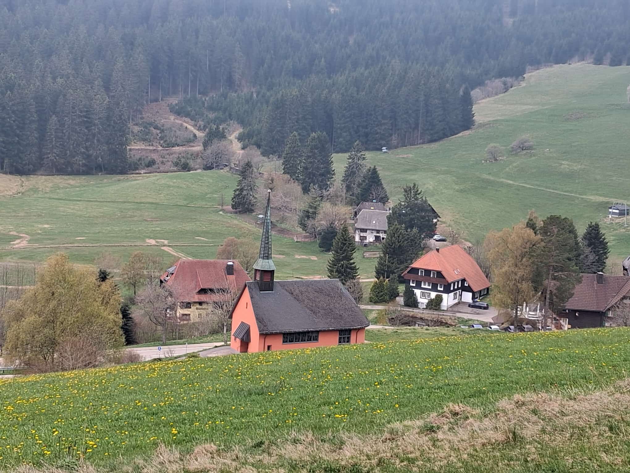 Weiter den Pflumberg runter und mit Sonne im Gesicht zur Cyriakskapelle. Denn heute hatten wir Glück mit dem Wetter. Sonne, ab und zu bewölkt und warm. 🙏Auch der Frühling zeigt sich nun endlich auch im Hochschwarzwald.