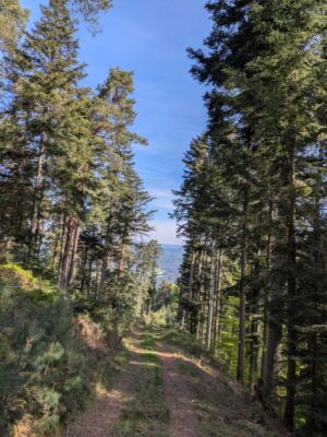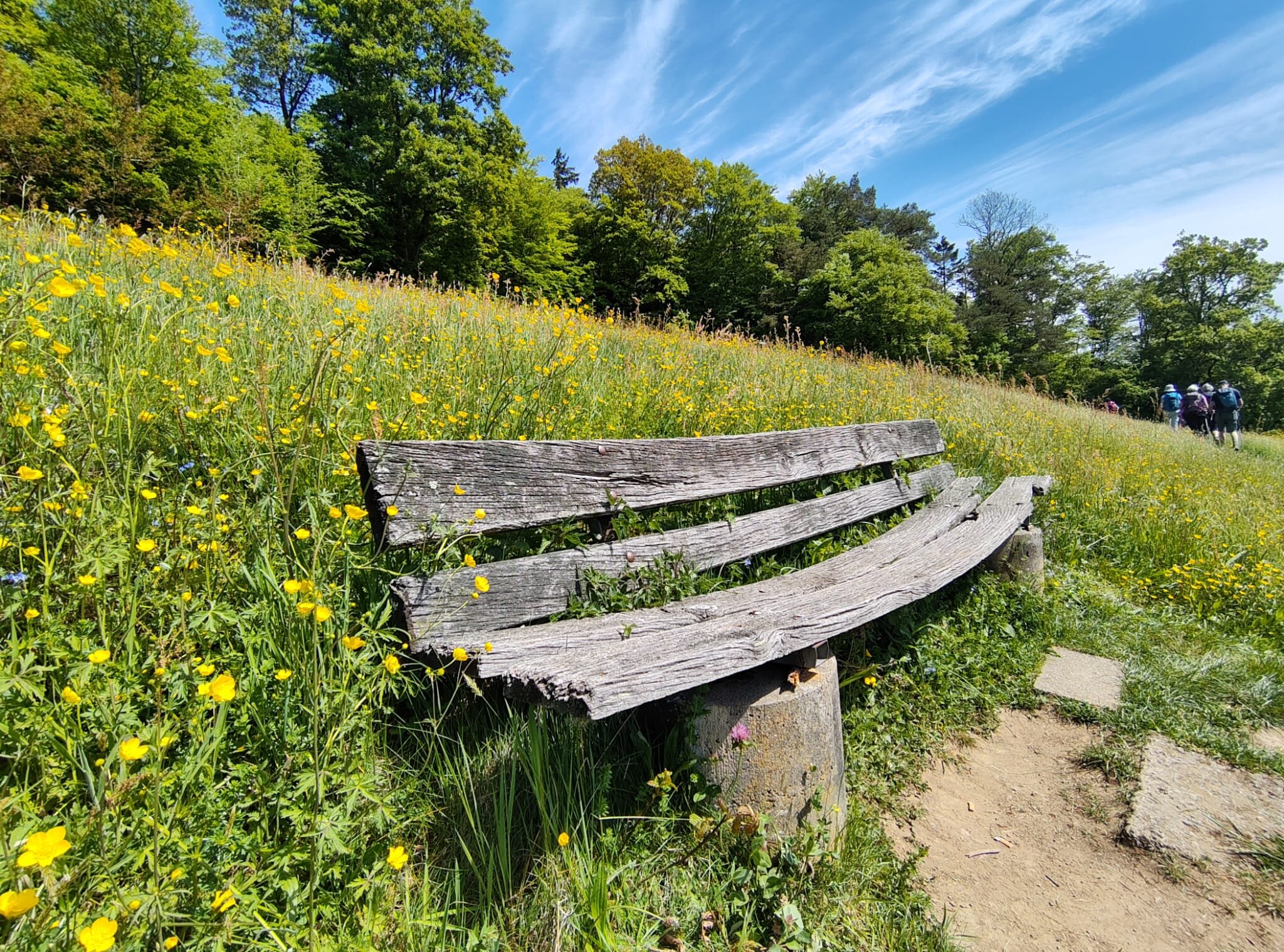 Jetzt kam der letzte aber schweißtreibenden Anstieg zum Fischbacher Höchst. Hier haben wir unsere Vesperpause gemacht, da die Bänke in der Sonne verführerisch waren.