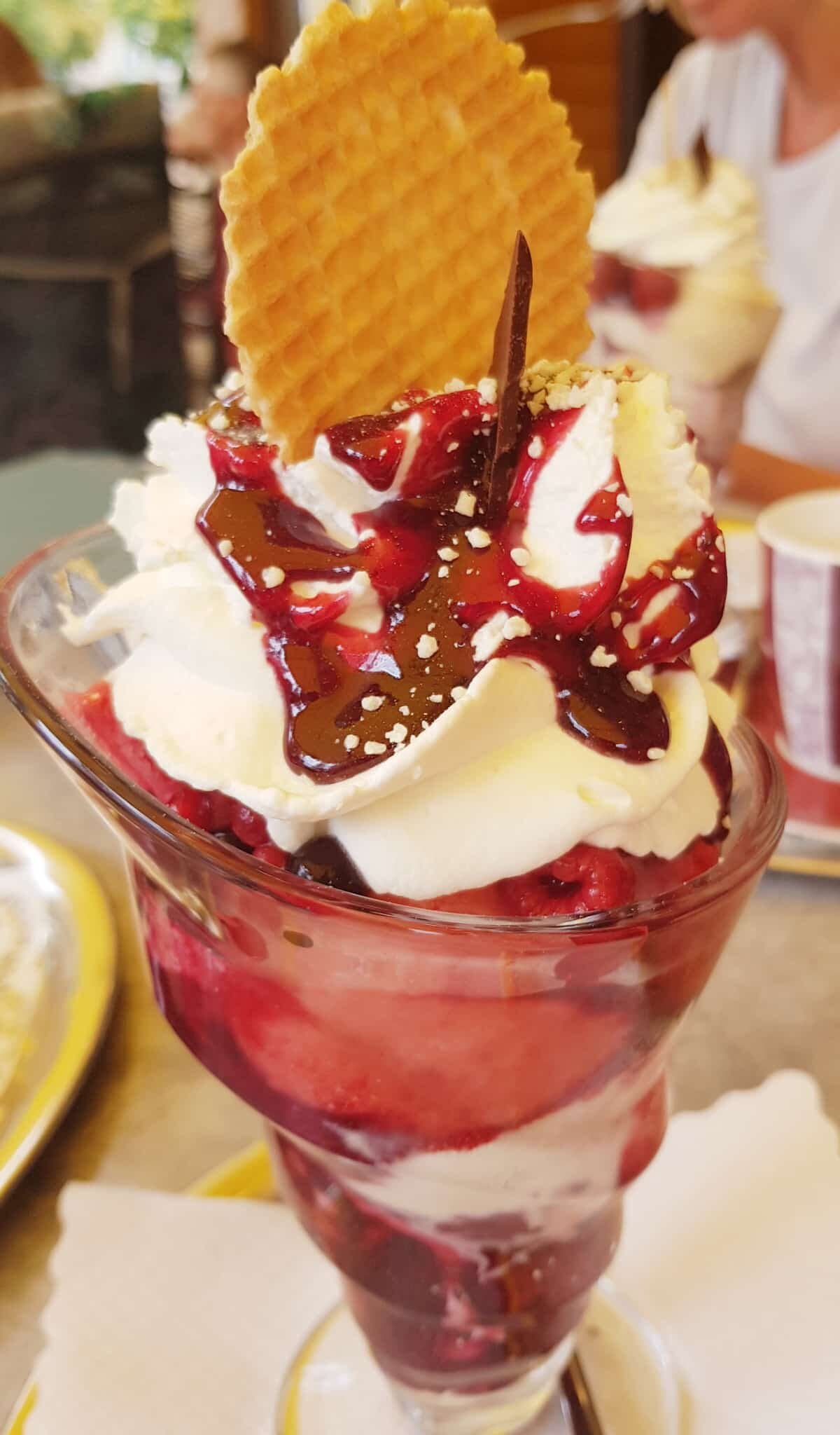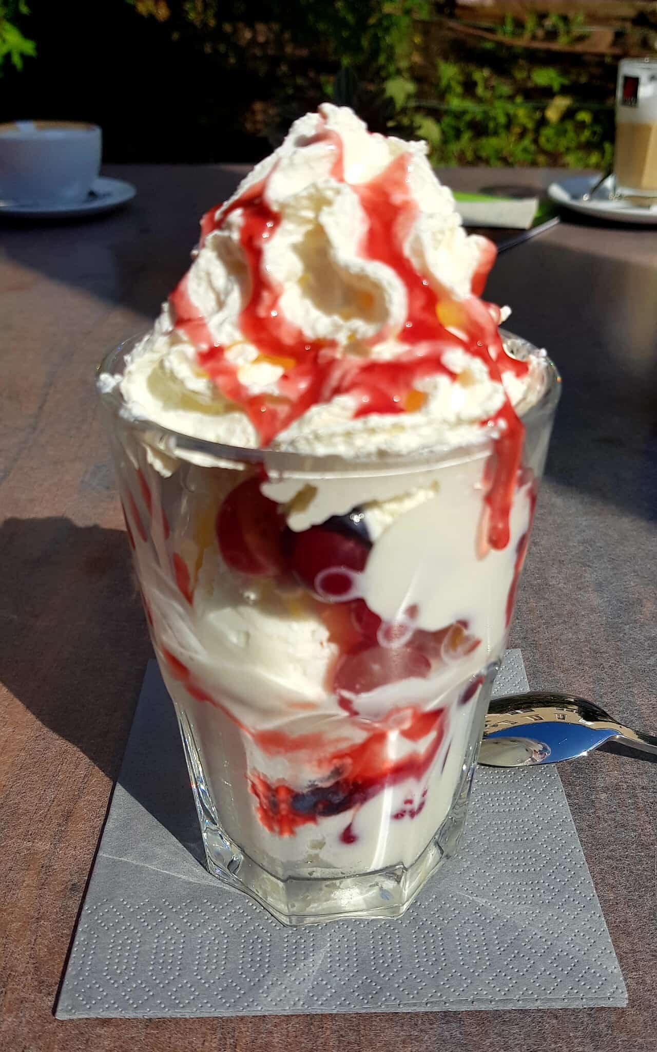 Da wir dann im Café in der Sonne den Kuchen oder den Eisbecher genießen konnten, war die Gruppe sehr zufrieden.