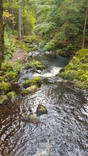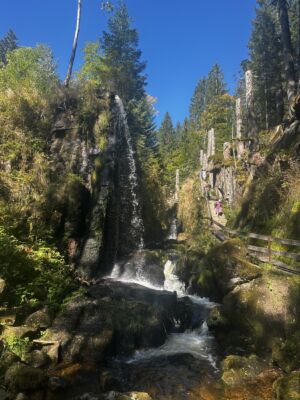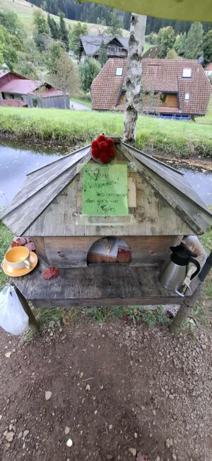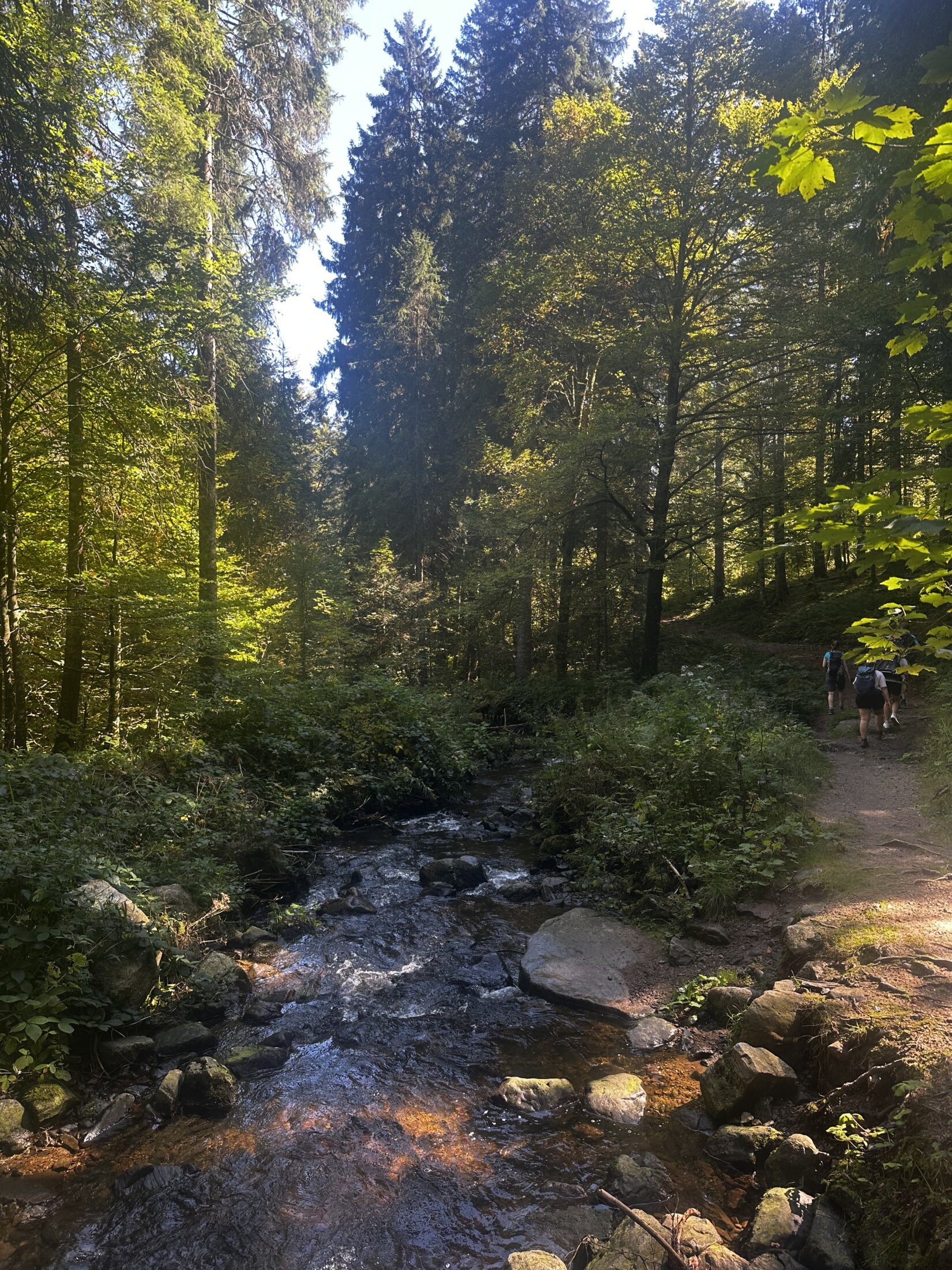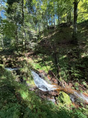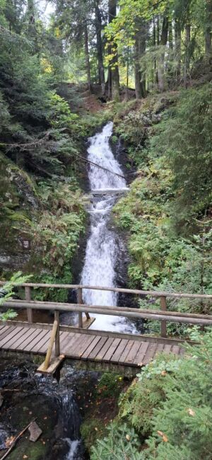 Weiter ging es nun an der Haslach entlang. Über einen neuen Holzsteg konnten wir das Biber Paradies bewundern. Der Spur der Schafherde folgend 🤣 ging es jetzt zum Falkauer Wasserfall runter. Die 200 m wieder hoch und durch Falkau durch wieder in den Wald zum Vesperpunkt Rotkreuz. Nun war es nicht mehr weit. Über die Seesteige erreichten wir Titisee. Sind zur Endeinkehr nicht ins geliebte Räubercafé, sondern in der Seestraße eingekehrt, wo ein Wanderfreund uns alle eingeladen hat (runder Geburtstag). Dankeschön 🍰☕