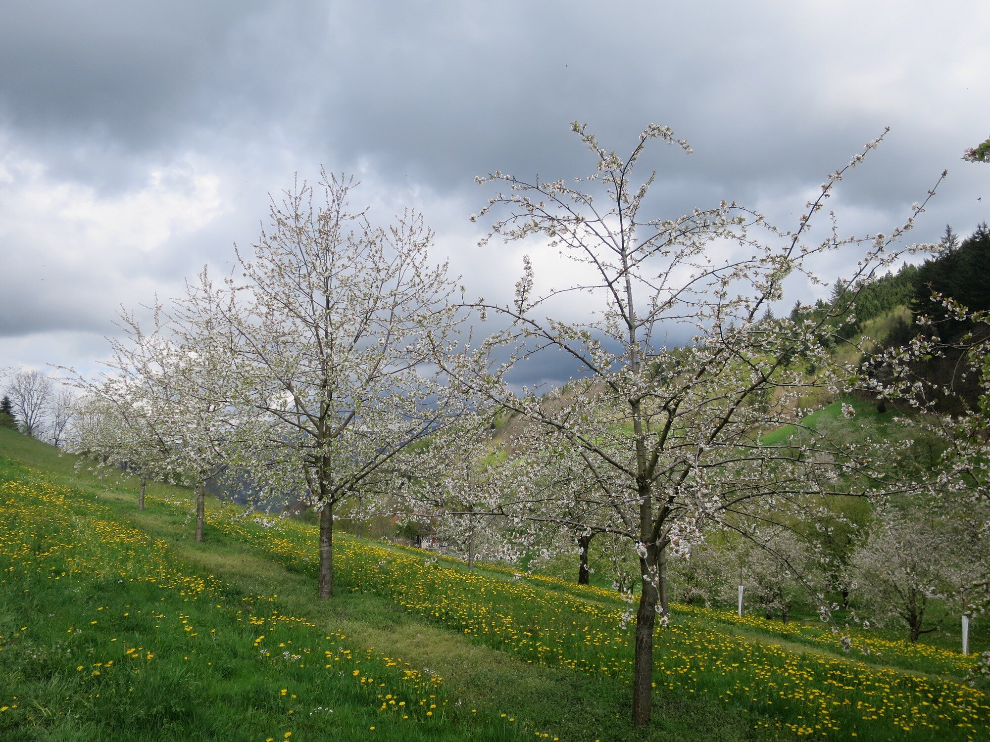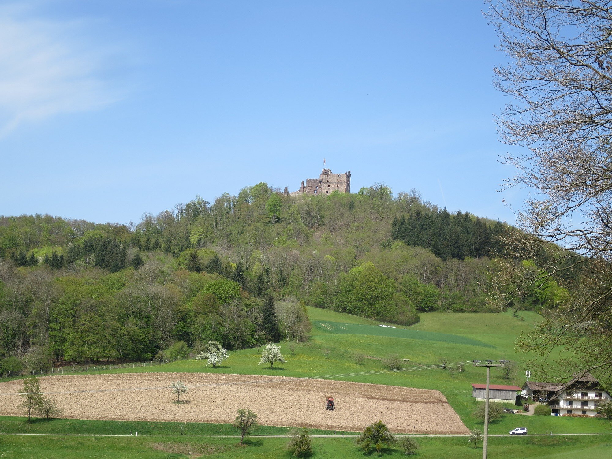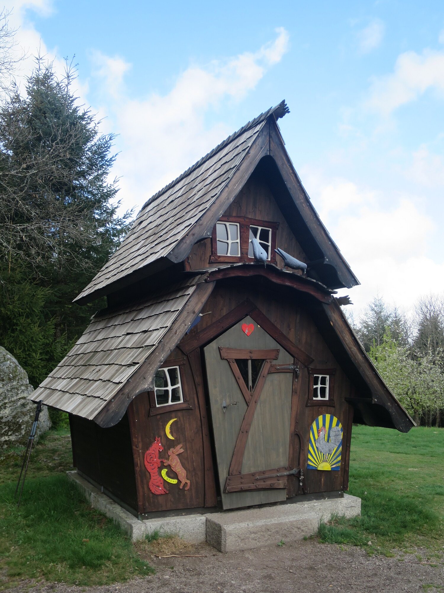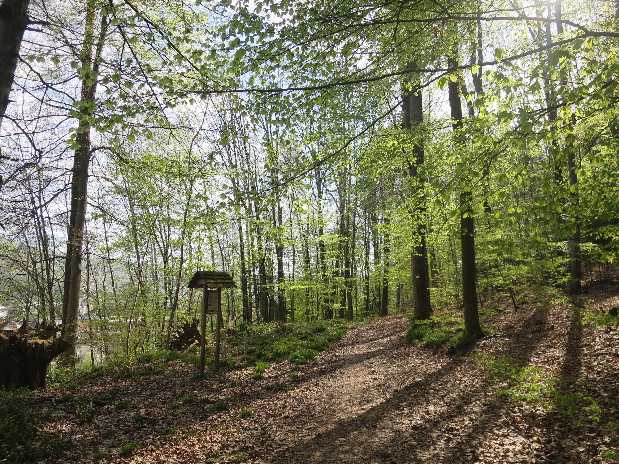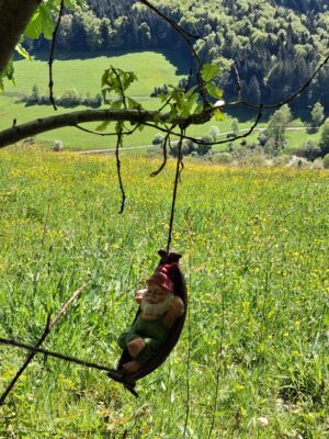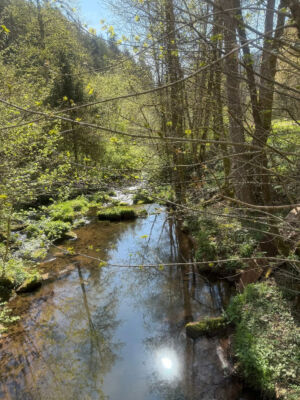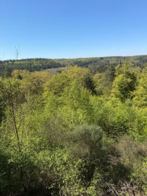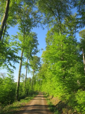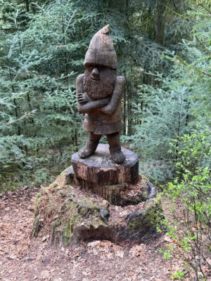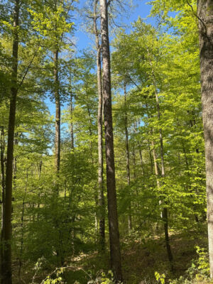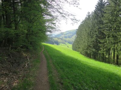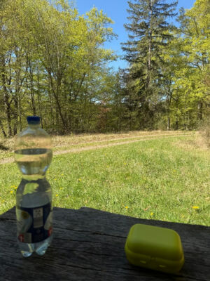 Bei bestem Wetter (der Regen hat ca. 5min vorm Start aufgehört) haben wir die schönen Ausblicke genossen und ab ca. 14 Uhr kam immer mehr Sonne raus. Besonders schön waren die Grüntöne vom frischen Buchenlaub und die noch blühenden Kirschbäume beim Sohlberg. Mittagspause fand beim Hexenhaus auf dem Sohlberg statt – Es gab allerhand „Flüssiges“ in Form von Wein und Eierlikör 😊