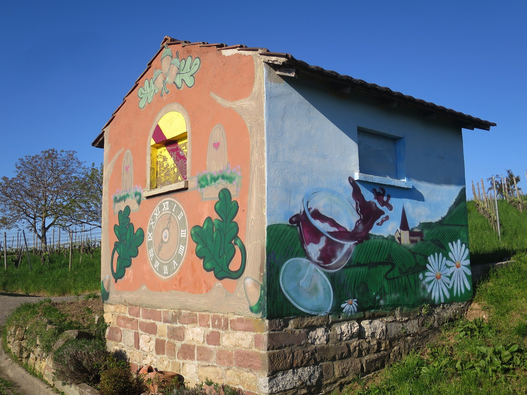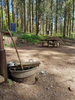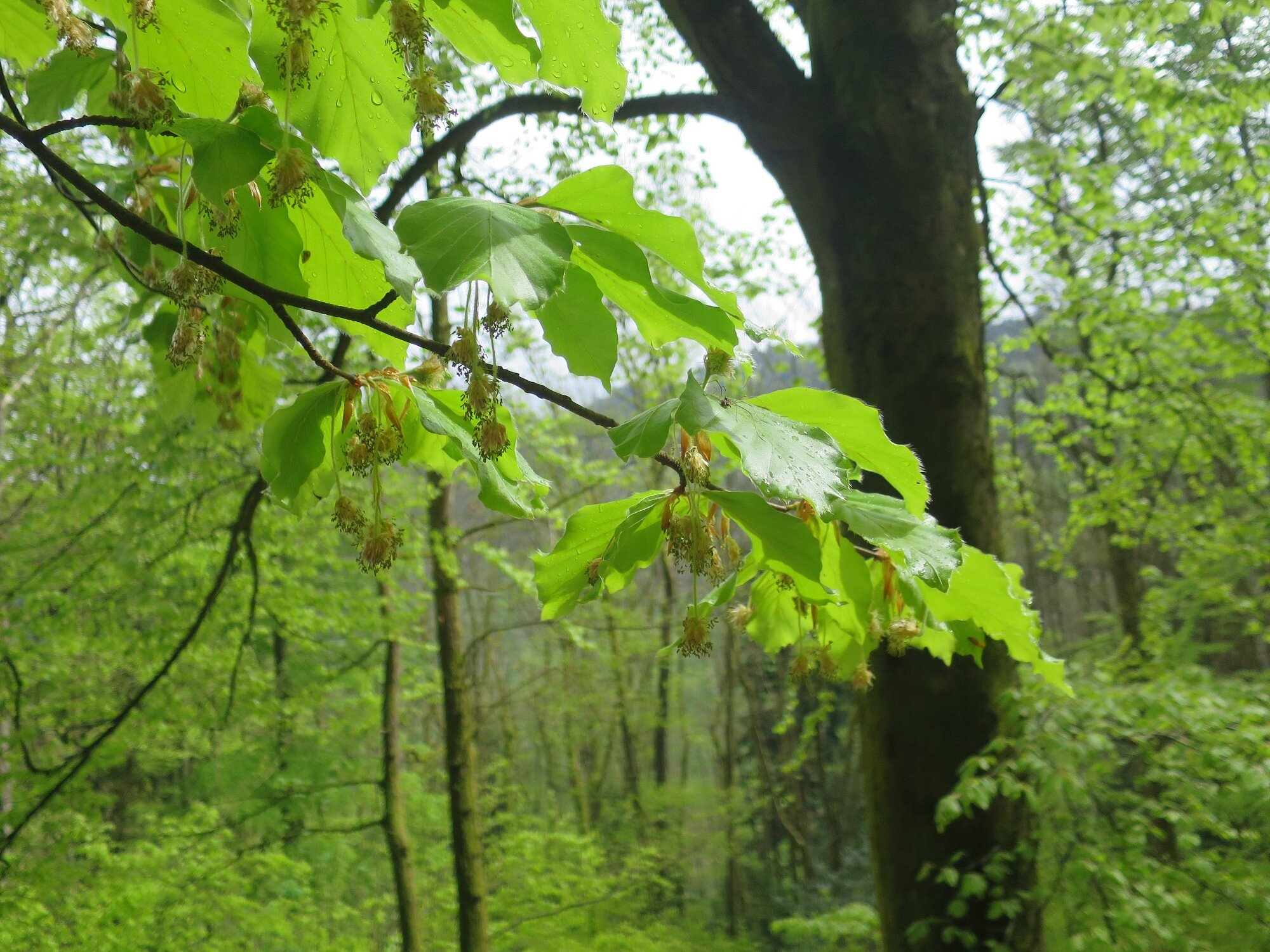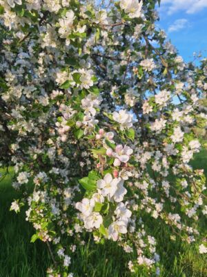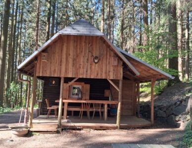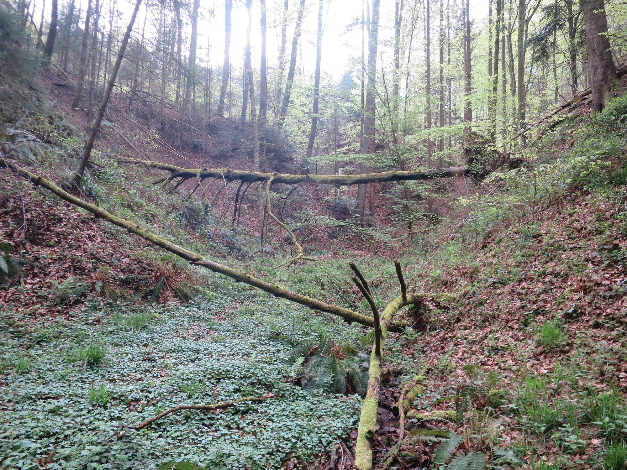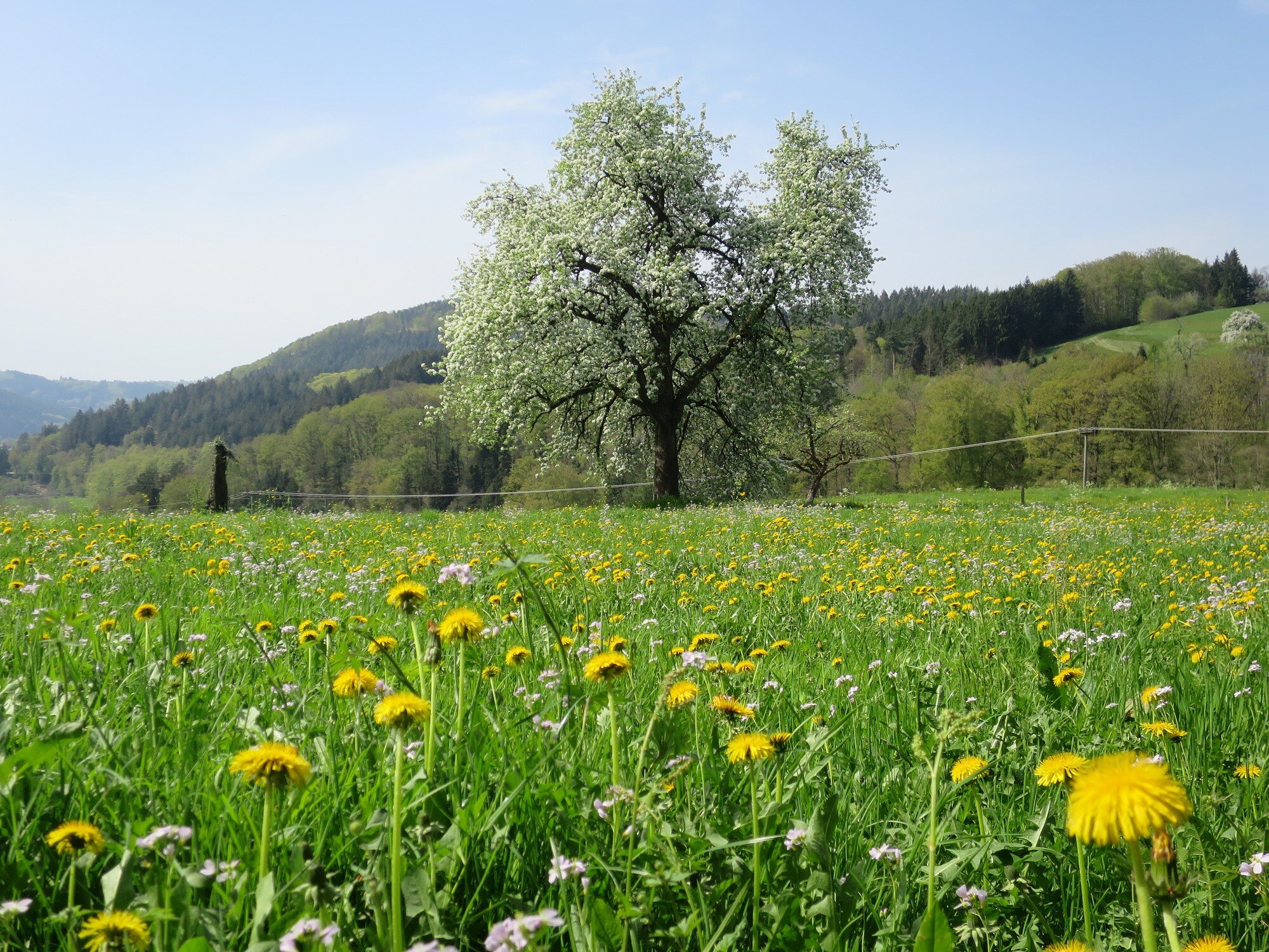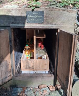 Bei bestem Wetter (der Regen hat ca. 5min vorm Start aufgehört) haben wir die schönen Ausblicke genossen und ab ca. 14 Uhr kam immer mehr Sonne raus. Besonders schön waren die Grüntöne vom frischen Buchenlaub und die noch blühenden Kirschbäume beim Sohlberg. Mittagspause fand beim Hexenhaus auf dem Sohlberg statt – Es gab allerhand „Flüssiges“ in Form von Wein und Eierlikör 😊