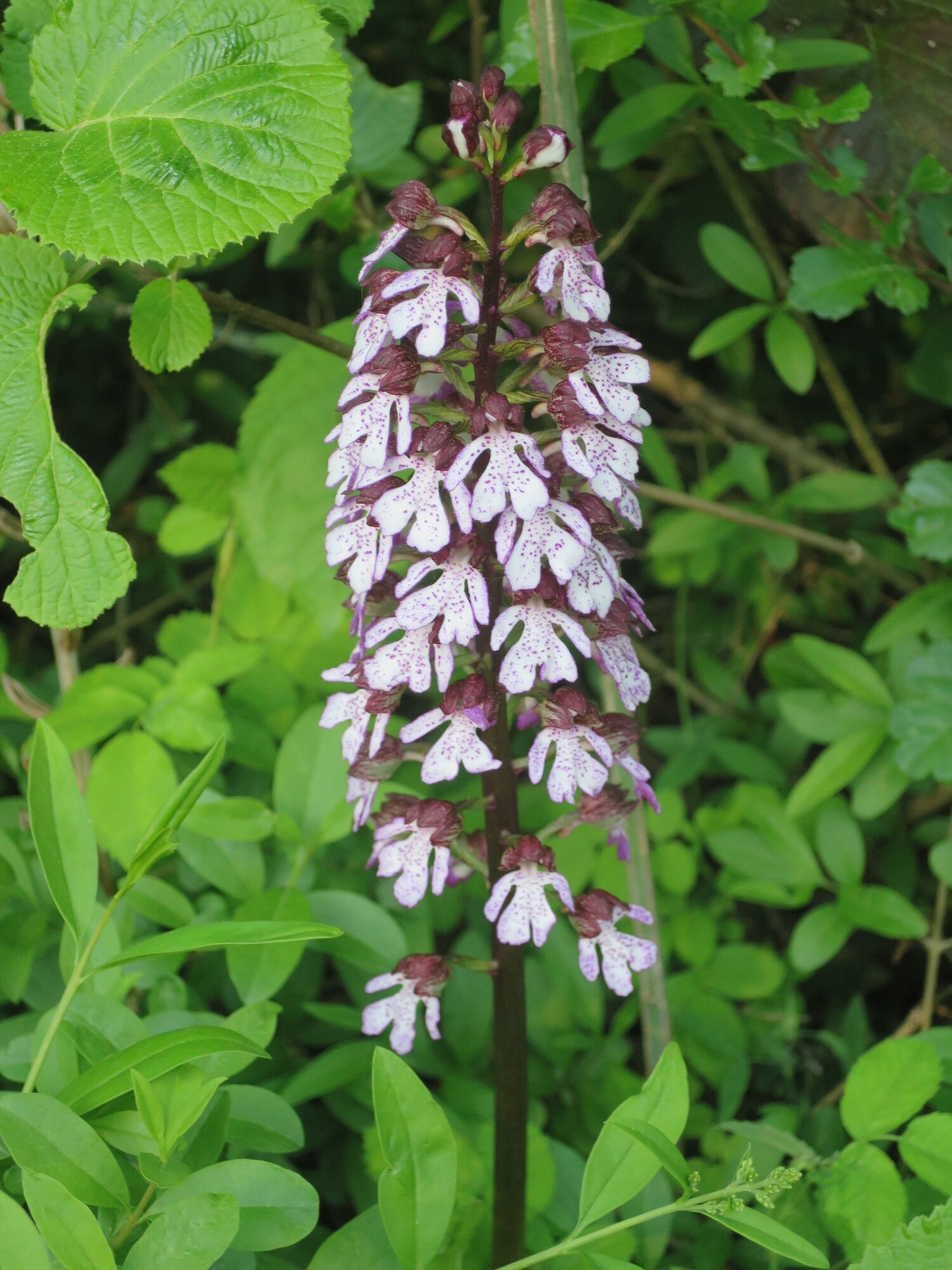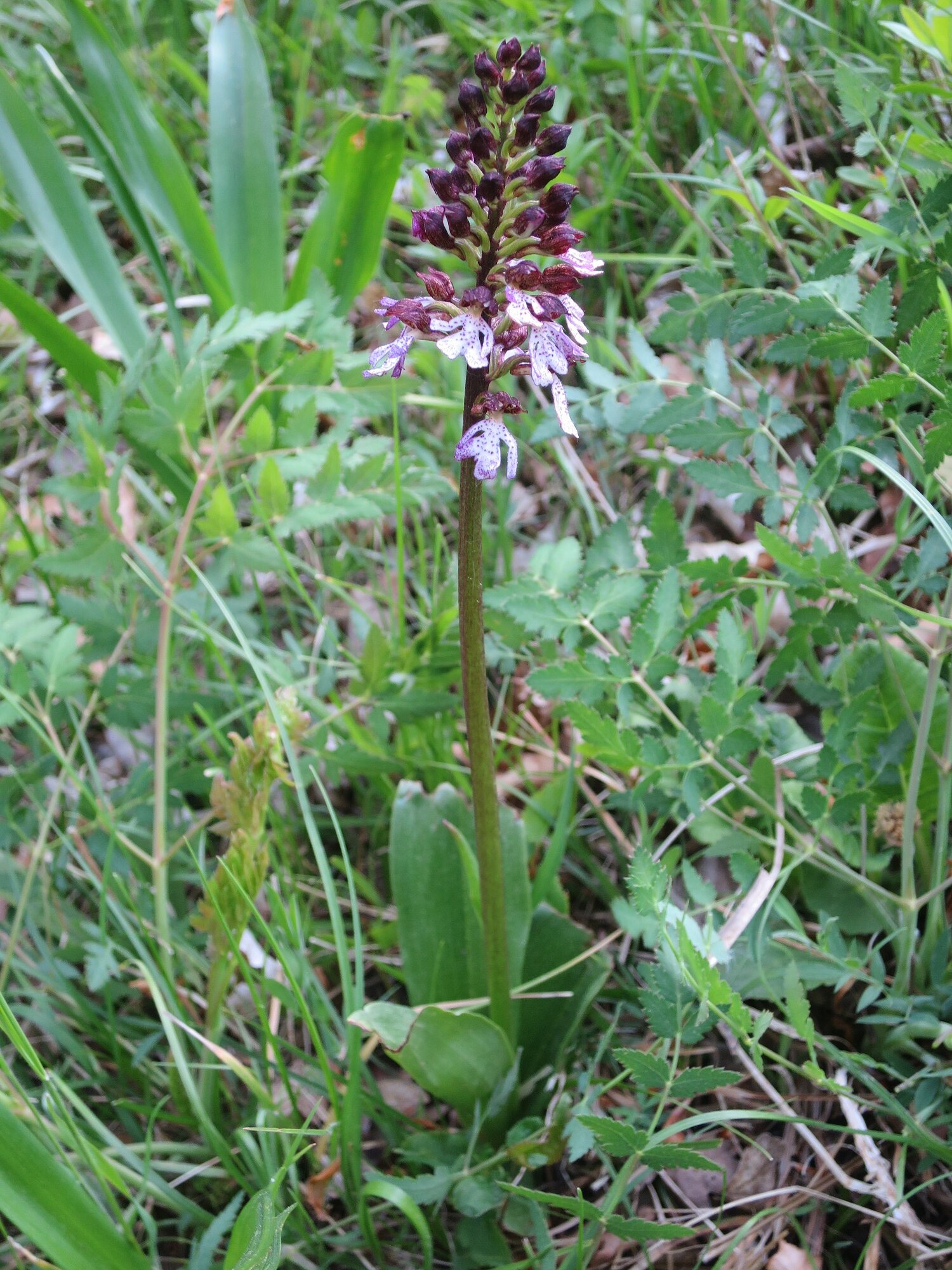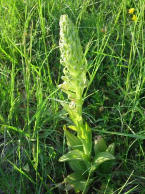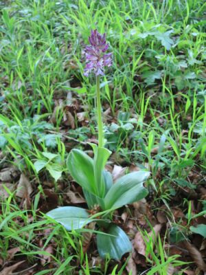 Nach einer herzlichen Begrüßung steuerten wir das Naturschutzgebiet Jennetal an, bekannt für seinen Reichtum an seltenen Pflanzen (auch Orchideen). Auf den mageren Wiesen fanden wir allerdings nur zwei verschiedene Orchideen: Das Helm-Knabenkraut: https://de.wikipedia.org/wiki/Helm-Knabenkraut und ein paar Exemplare vom Purpur-Knabenkraut: https://de.wikipedia.org/wiki/Purpur-Knabenkraut. In 2-3 Wochen findet man in den Naturschutzgebieten Jennetal und Berghauser Matten mit Sicherheit weitere Orchideen. Nach dieser kleinen Exkursion ging es durch einen lichtdurchfluteten Wald bis an den oberen Ortsrand von Leutersberg. Am Steinbruch fanden wir noch eine weitere Orchidee, die allerdings auch erst am Aufblühen war: Die Bock-Riemenzunge (https://de.wikipedia.org/wiki/Bocks-Riemenzunge).