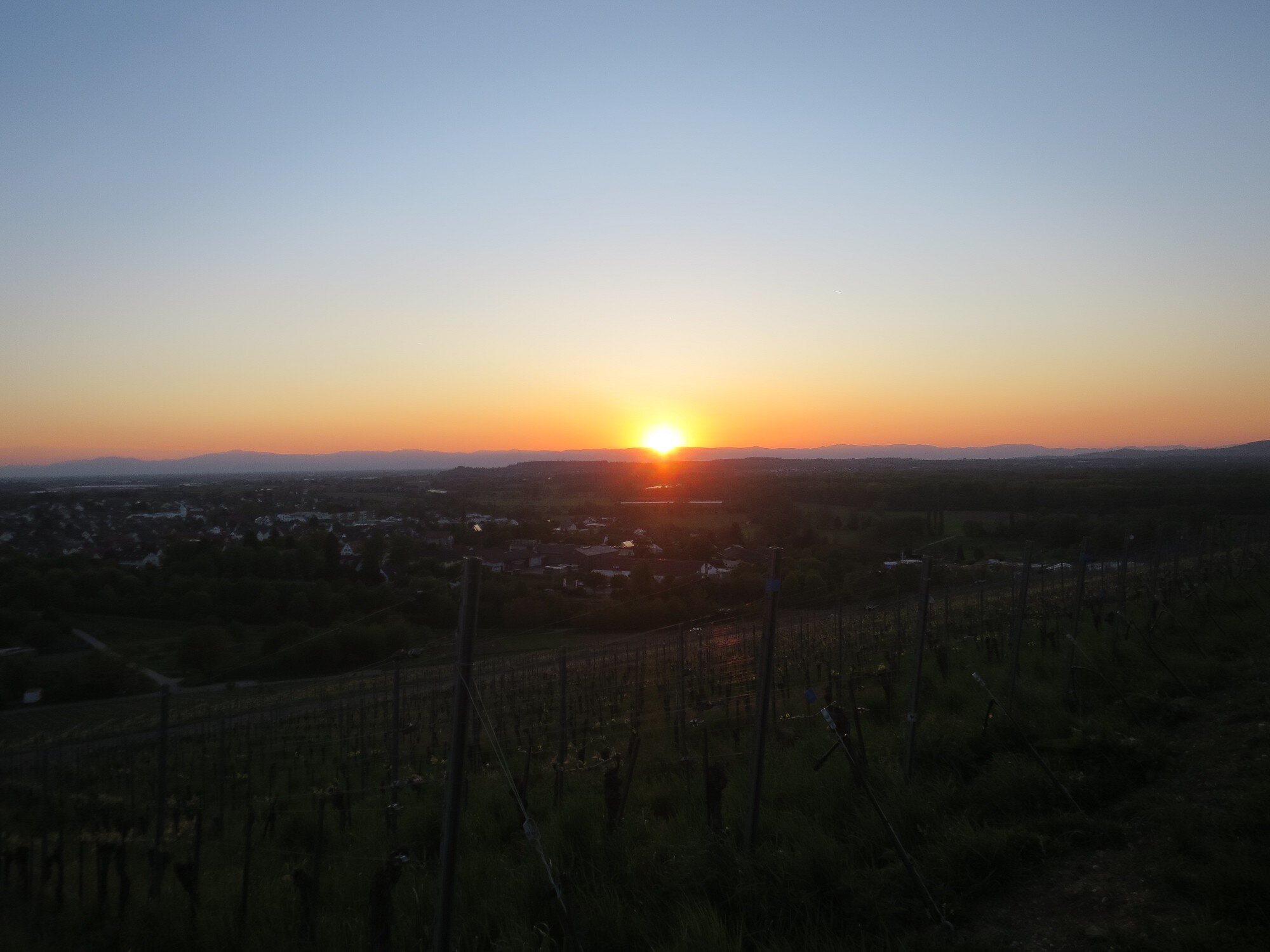Kurz danach erreichten wir einen aussichtsreichen Platz in den Reben – Hier fand unser gemeinsames Picknick statt. Wir genossen Wein, Sekt und weitere Köstlichkeiten genossen inmitten einer schönen Abendstimmung. Beim Rückweg nach Ebringen konnten wir einen traumhaften Sonnenuntergang bewundern.
