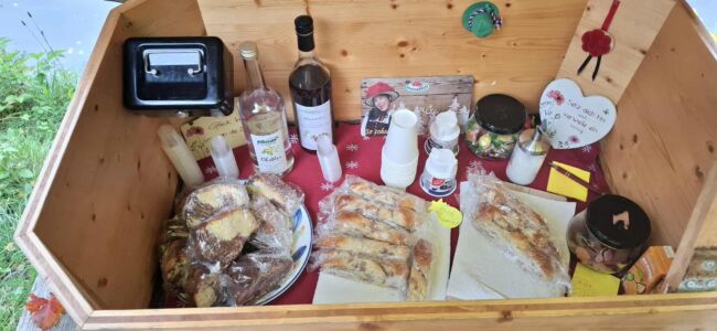 Vom Bhf in Titisee ging es zwischen See und Bahnlinie über den Campingplatz zum Jockeleshäusle. Über die Straße und ein Stück die Straße entlang bis Erlenbruck. Am Hirschleweiher und Helmlewald zum Mathislehof. Da der Hof erst um 13 Uhr geöffnet hat, habe ich spontan die Tour, in Absprache der Gruppe, etwas verändert. Wir sind erst zum Mathisleweiher gelaufen, dort eine kurze Vesperpause gemacht und dann zurück zum Mathislehof, wo von zweien ein Vesper verspeist wurde und die anderen einen Kaffee getrunken haben. Natürlich wurde auch für zu Hause gut eingekauft. Wurst, Brot und viel leckerer Käse. 😋