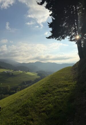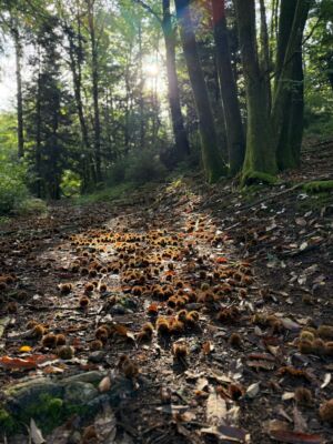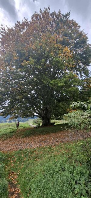Auf unserer Panoramarunde wanderten wir einmal 360 Grad um das bezaubernde Blumen- und Weindorf Sasbachwalden. Die Runde war ungemein aussichtsreich und sehr abwechslungsreich: Wir liefen durch Weinberge, Wiesen und auch durch schöne Wälder. Auf dem Waldboden lagen unzählige Esskastanien und wir entdeckten auch den einen oder anderen Pilz. Trotz der kontinuierlichen Bewölkung hatten wir die meiste Zeit schöne Ausblicke über Sasbachwalden bis hinüber ins Elsass. An einem schön gelegenen Schnapsbrunnen machten wir unsere Vesperpause. Wir erweiterten allerdings die offizielle Tour um ca. 200 Höhenmeter auf teilweise steilen Pfaden. Dafür hatten wir am höchsten Punkt der Wanderung einen wunderschönen Ausblick. Danach liefen wir auf direktem Wege bergab zum Spinnerhof, wo bei Kaffee, Kuchen und Bier unsere Einkehr stattfand. Danach ging es entlang der Gaishöll-Wassserfälle abwärts bis zum Ausgangspunkt.