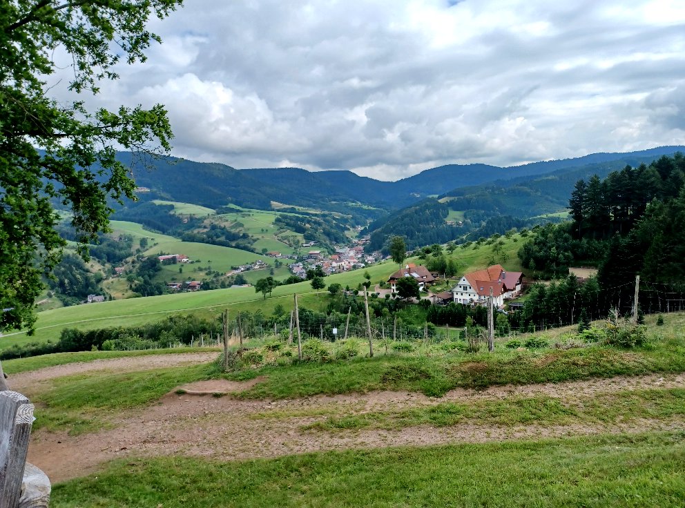 Aussicht oberhalb des Kohlerhofs Runde von Spielweg im Obermünstertal, Dauer etwa 2,5 Stunden, Länge 7 km, Höhenunterschied 340 m. Es handelt sich um eine Rundwanderung.